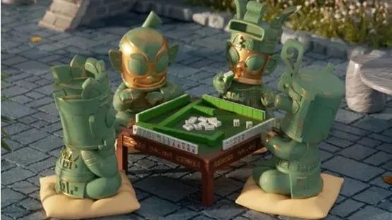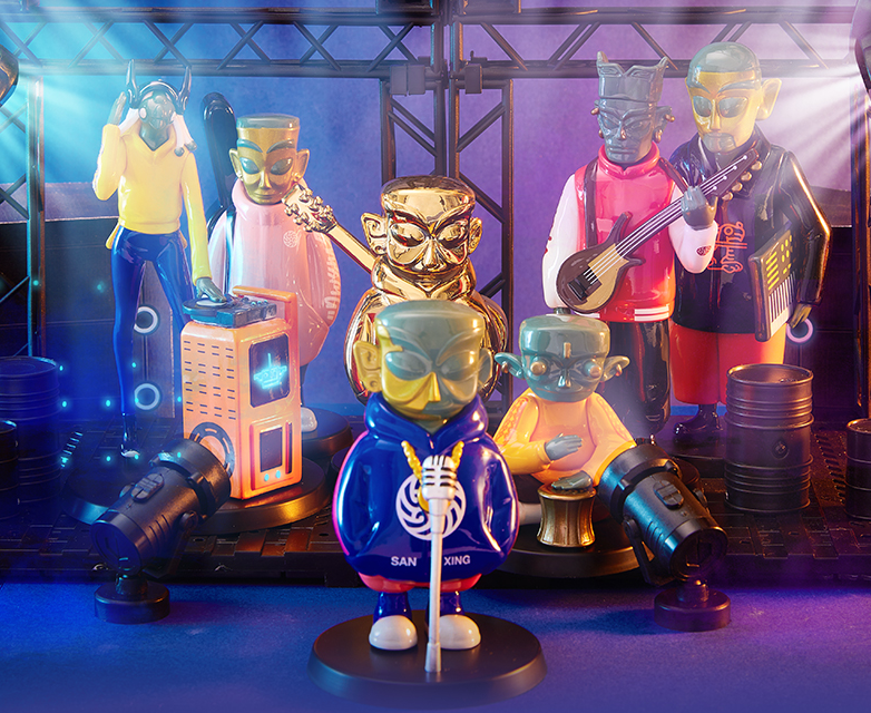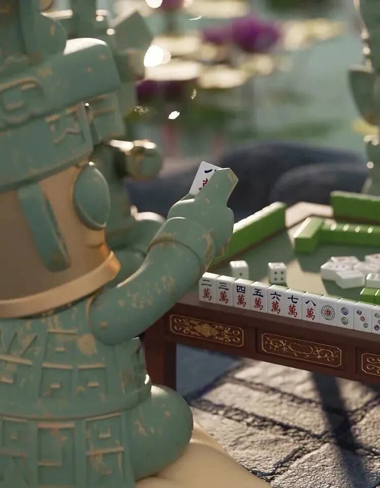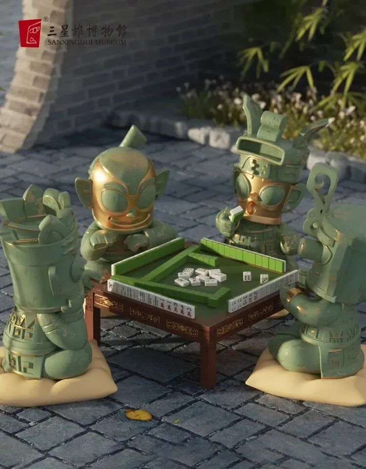 四个青铜小人坐一桌搓麻将,有的正襟危坐,有的托腮思索。这些青铜小人除了打麻将,还会玩蜀绣、功夫茶、变脸等,制造出一种反差萌的设计。每个小堆还拥有不同的表情,这文物手办也太生动了吧。还有跨界营业的三星堆摇滚乐团,还真让人说不好是丑还是潮。