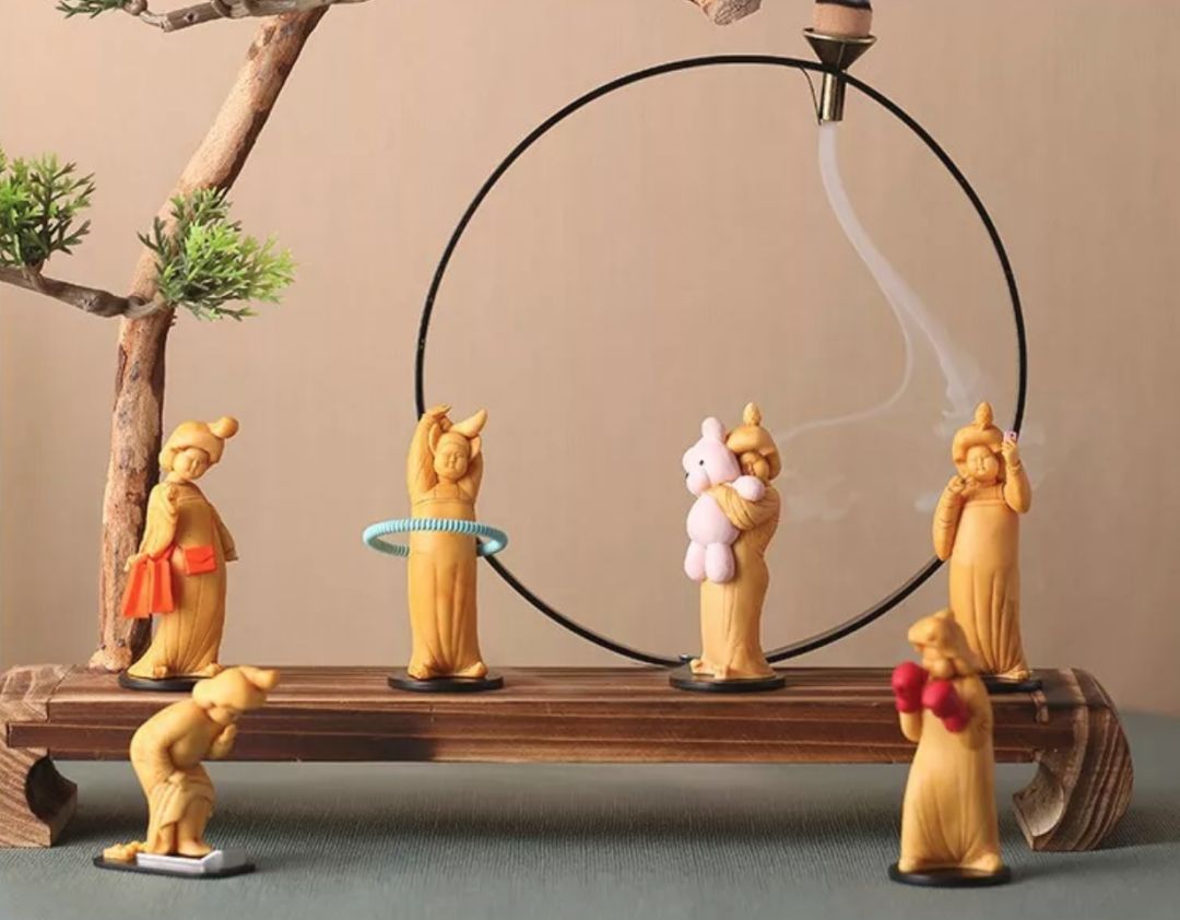 壁画中的6个仕女“破壁而出”,被做成立体迷你手办。虽然是来自唐代的“女团”,但造型展现的是现代精致女孩的生活场景。