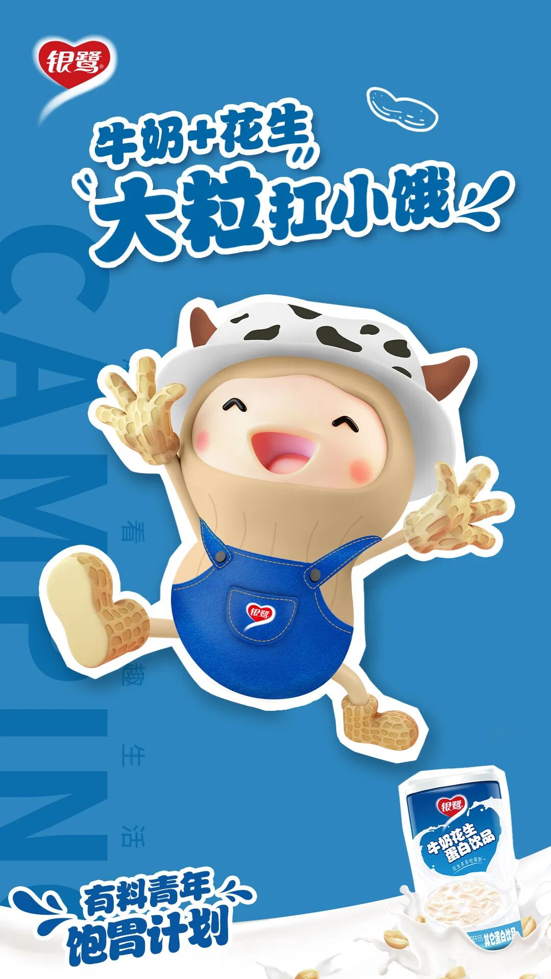 大粒小子的出现,可以说强化了大众对银鹭牛奶花生的产品认知,增强了用户心智,同时通过虚拟IP形象赋予其价值内涵,在原有优势基础上的形象升级,有利于银鹭牛奶花生在传播上更好地破圈,重塑年轻消费者对银鹭牛奶花生的品牌认知。