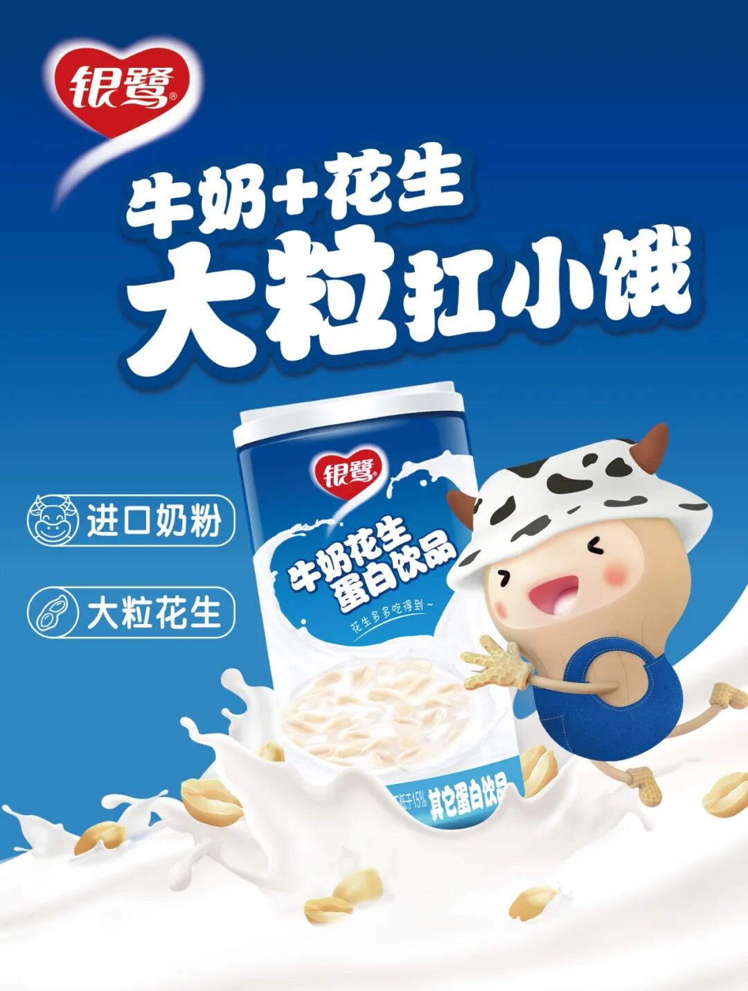 更重要的是,银鹭牛奶花生非常巧妙地把“香浓牛奶+大粒花生”两个核心配料融合到了大粒小子的形象设计中。要知道,“牛奶+花生”是许多消费者对银鹭牛奶花生的重要记忆点,也是银鹭牛奶花生在市场竞争中取得优势的核心产品力。