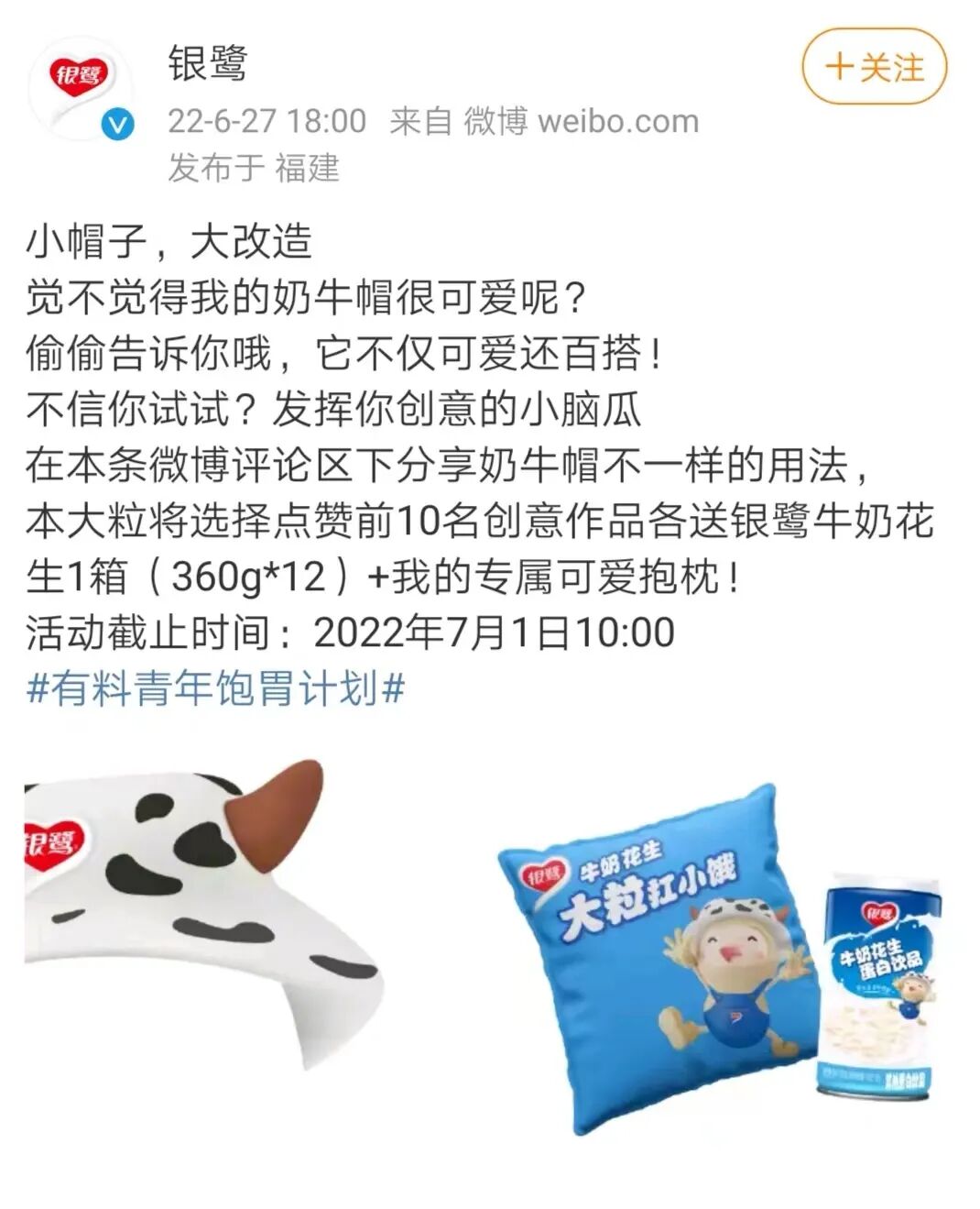 为了进一步强化这种认知,赢得年轻消费者的圈层认同,银鹭牛奶花生还结合产品优势,同步上线了“有料青年饱胃计划”,和消费者一起互动。