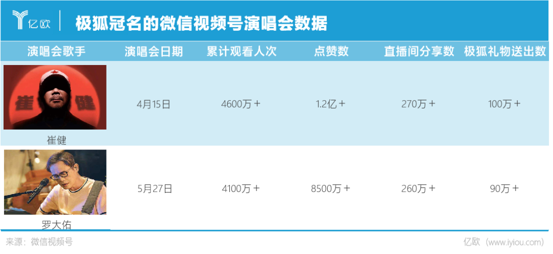 得益于个人号召力,崔健、罗大佑的微信视频号演唱会不断在网上刷屏,全网曝光量达到数十亿次,而极狐的品牌露出也因此大幅提升。