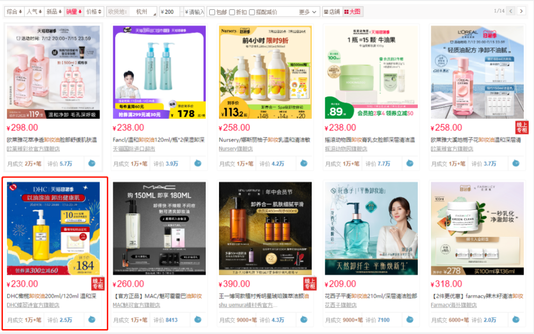 其中DHC蝶翠诗天猫旗舰店拥有259万粉丝,销量最好的“DHC橄榄卸妆油”月销超过1万件,仅单品年销售额超过1920万元。在天猫200元价位以上的卸妆油中,销量排至第六名。据DHC一位省级代理商告诉《未来迹FutureBeauty》:“DHC的唇膏、卸妆油产品深入人心,销量并未下滑。”