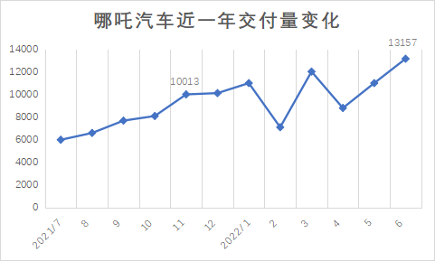 自去年11月首次破万后,除了2、4、5月受到淡季和供应链影响,其余时间均保持上万的成绩。其最新月交付成绩达13157辆,上半年累计交付63161辆,仅落后于小鹏汽车。