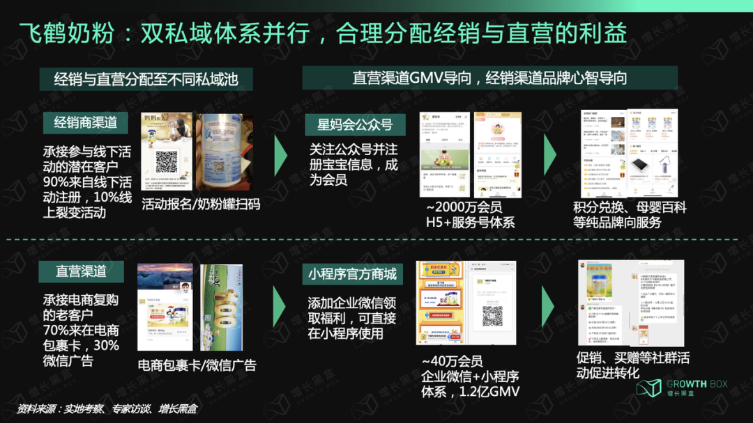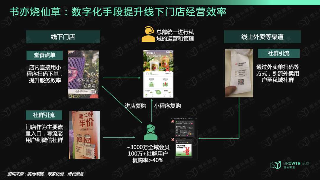 第二部分,我们将探讨含加盟模式,或者经销直营混合的品牌,如何考虑私域的价值。其中,飞鹤奶粉85.8%的营收依赖于经销商在线下的渠道,没有自己的门店,依靠渠道导购促成购买;书亦烧仙草的交易几乎全部依托线下加盟店完成;联想则有着更加复杂的,加盟直营门店混合、线上线下平均的业务构成;周大福虽然也是经销直营混合,但对于经销商门店的管控力较强,业态较为依赖线下导购。在渠道为王的时代里,传统品牌的早期发展离不开经销商在线下的快速扩张,因此经销网络也被喻为"品牌的毛细血管",但这也意味着品牌的所有权和经营权被下放给经销商,自身对经营的控制力减弱。因此,在逐渐到来的消费者主权时代,如何在接近消费者的同时平衡好经销商利益,成为这些品牌亟待解决的课题。成立于1962年的飞鹤是中国最早的奶粉品牌之一,婴幼儿配方奶粉业务占总体的95%。据飞鹤集团2021年报显示,飞鹤在全国有2000家一级经销商,覆盖11万个零售终端,85.8%的营收依靠线下经销商进行销售。[5]2015年,飞鹤确立品牌定位为“更适合中国宝宝体质的奶粉”,用高端定位主攻下沉市场,在营销方面,则主要表现为高频开展大量地推活动,在发力用户教育的同时提升品牌声量。每年大大小小的地推活动达到百万场,销售费用超过营收的30%。高投入也带来了高回报,2021年飞鹤地推活动获取新客户超过226万,2014-2021七年时间,市场占有率从4%快速增长到了19%,杀出外资的重重包围,夺得国内奶粉市场市占率第一的宝座。[6]高频次的大量地推给飞鹤带来了可观的用户增量,但活动触达的人群受到时间和空间的限制,具有一定随机性,而且后续难以重复触达和留存用户。为了建立更强的用户触点,提升品牌粘性,飞鹤与2017年推出全域会员体系——星妈会。通过线上线下的全渠道引流,飞鹤星妈会的会员统一沉淀在微信公众号上,形成品牌私域。飞鹤通过公众号内容和星妈会H5页面为会员提供专业内容和服务,以此增强会员的品牌心智,提升留存,延长用户生命周期。商品力层面,不同于其他品牌将私域作为重要的转化阵地,飞鹤星妈会的私域体系内有着独树一帜的商品逻辑。星妈会内嵌的“星鲜优选”商城,定位是会员的积分兑换商城,商城内选品围绕宝妈群体各方面的潜在需求,但唯独不销售奶粉。考虑到飞鹤对经销商的依赖程度,这一点不难理解。星妈会的会员增长高度依赖经销商的引流,自然不会与经销商直接争利,而是通过提升用户品牌粘性的方式,促使消费者在经销商的门店持续复购。那么,星妈会具体是如何通过强大的运营力,完成用户留存体系的呢?在引流阶段,星妈会90%的用户来自线下,用户分为新客和潜客,新客即第一次购买商品的用户,扫描产品罐底二维码即可注册会员;而潜客则是飞鹤线下活动报名注册的用户,所有飞鹤体系下的活动均需注册星妈会会员才可以报名。首次注册用户完善信息后都可以免费领取一罐奶粉,会员积分还可以用于兑换抽奖。2021年星妈会新增注册用户600万人,总会员数已达1700万,而新增用户中,有70%是0-1岁的家长,而2021年新生儿总数为1000万左右,也就是说有接近一半刚刚生育的家长注册了星妈会的会员,引流效果十分可观。在培育阶段,星妈会由于不以转化为目标,反而可以专注于用户服务。星妈会公众号涵盖完善的内容矩阵,包括知识科普、专家答疑等,覆盖所有育儿阶段。星妈会微信公众号整体粉丝量超千万,单篇文章阅读量最高可达百万。H5平台则作为用户的个人主页,针对宝宝的不同年龄段为用户提供知识课堂、专家问答、内容专栏、积分商城等服务,日活可达30万。此外,星妈会还对会员进行分层,为核心活跃会员建立社群精细化运营,培养他们成为品牌KOC。在与经销商紧密合作的同时,飞鹤依然有14.2%的份额在直营电商,按照2021年财报公布的总营收227.76亿计算,也有30多亿的规模。[5]这部分业务想要增长,又怎么能放过势头正猛的私域电商呢?飞鹤的解法是:将私域切分为两个模块,双线并行,在星妈会的体系之外,成立飞鹤官方商城小程序,拓展直营电商的销售增量。目前飞鹤官方商城小程序用户量约40万,2021年GMV1.2亿,尽管占比不高,但由于行业毛利率较高,飞鹤集团整体毛利率更是高达70%,[5]而私域电商成本较低且没有平台抽成,因此利润率相当可观。关于官方商城的具体细节,本文暂时不做展开。从组织上来看,官方商城隶属于飞鹤电商部门,主要服务于电商的销售目标;而星妈会则隶属于运营部门,由内容、社群、积分商城等多个团队合作,服务于集团整体业务,通过聚集品牌势能的方式,保障生意的长远发展。如果说传统零售行业对经销商的依赖,主要源于他们控制着大量销售渠道,那么餐饮行业与加盟商则有着更加唇齿相依的关系。餐饮的销售端模式相对简单,消费者基本只有到店和外卖两种消费场景,都需要线下门店作为依托。而餐饮品牌想要增长,同样也是渠道先行,以加盟商为主体的大量扩店是品牌扩张必经之路。但餐饮本身不易标准化,一旦管理不好加盟商,导致产品和服务质量不稳定,甚至出现食品安全问题,对品牌将是灾难性的损害。那么,以加盟为主的餐饮业态,私域战略又会有怎样的特点?我们选择新式茶饮品牌“书亦烧仙草”为大家解析。众所周知,新式茶饮行业是公认的红海市场,近来头部品牌过得都不太好。在这个重资本、同