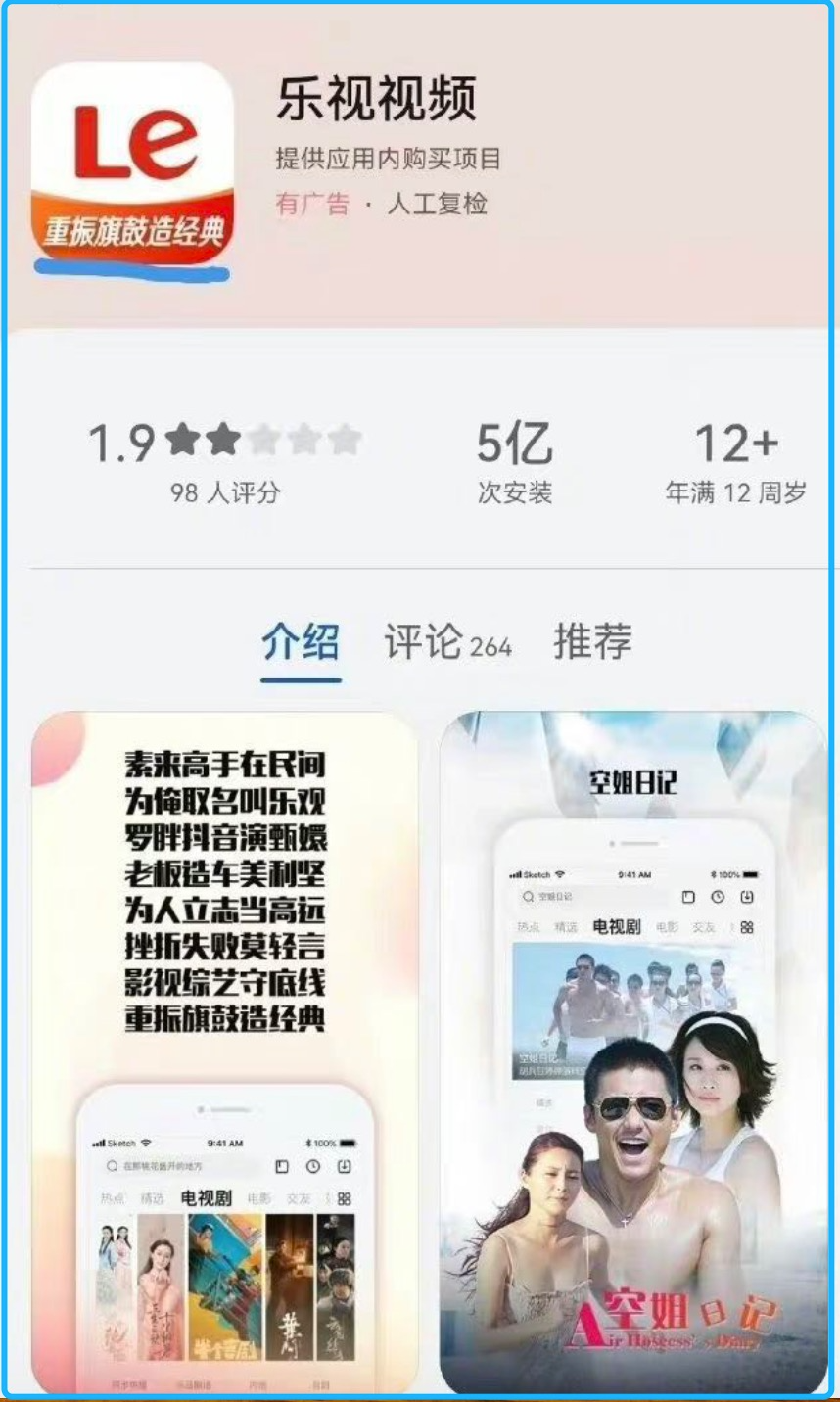 同时,乐视还在iPhone版的图标底部加上了“罗胖抖音演甄嬛”的文字,在安卓版的图标底部加上“老板造车美利坚”。应用商店详情里,还用一首打油诗来介绍:素来高手在民间、为俺取名叫乐观、罗胖抖音演甄嬛、老板造车美利坚。