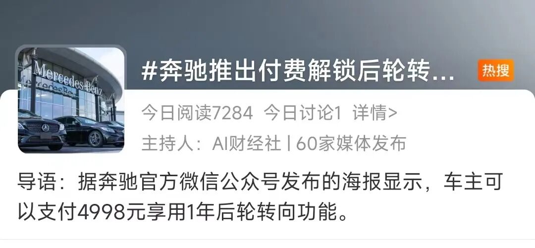 奔驰付费升级后轮转向被送上热搜,截图自微博