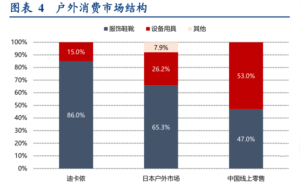 华创证券研报显示,预计露营带动的泛户外市场规模大约4000亿元,其中鞋服和户外用品的合计占比超过九成,而外界误以为可能大火的旅游产品,却只占一成。