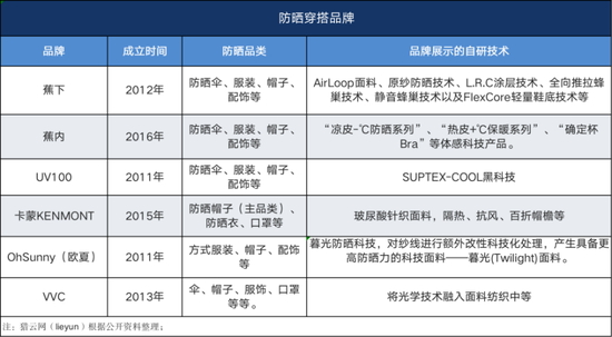 它们基本形成了当下防晒服饰市场的前方阵列的代表队成员。