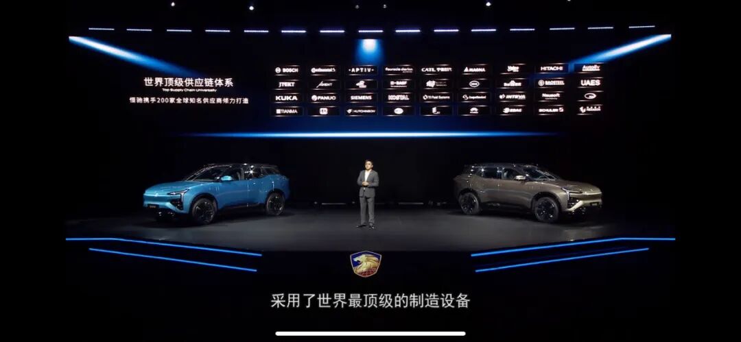 一个明显的特点是,相比于讲究自研的造车新势力,恒驰5却没有把精力放在这块,而主要是找供应商合作。发布会开场不久,刘永灼就强调恒驰是“与世界最顶级的零部件供应商合作”。