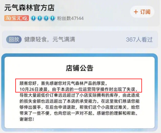 从伪日系到伪0糖事故,消费者对元气森林积累的怨气越来越多,更何况卖惨元气森林不是第一次。去年双十一前夕,元气森林闹出“价格乌龙”事件,店铺客服把优惠设置错了,元气森林自称一夜损失200万,没辙了只好让大家退款。当时就有网友猜测这是“卖惨营销”,为双十一赚热度。