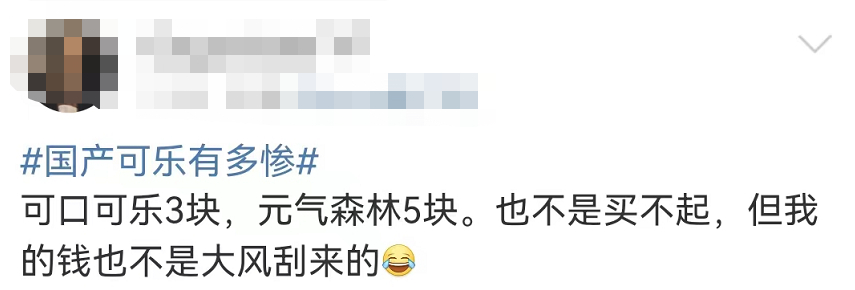 就像可口可乐、百事可乐500ml的饮料定价为3元,480ml的元气森林苏打气泡水价格5块5。两大可乐巨头便宜又香的话,网友凭啥要买更贵的可乐?