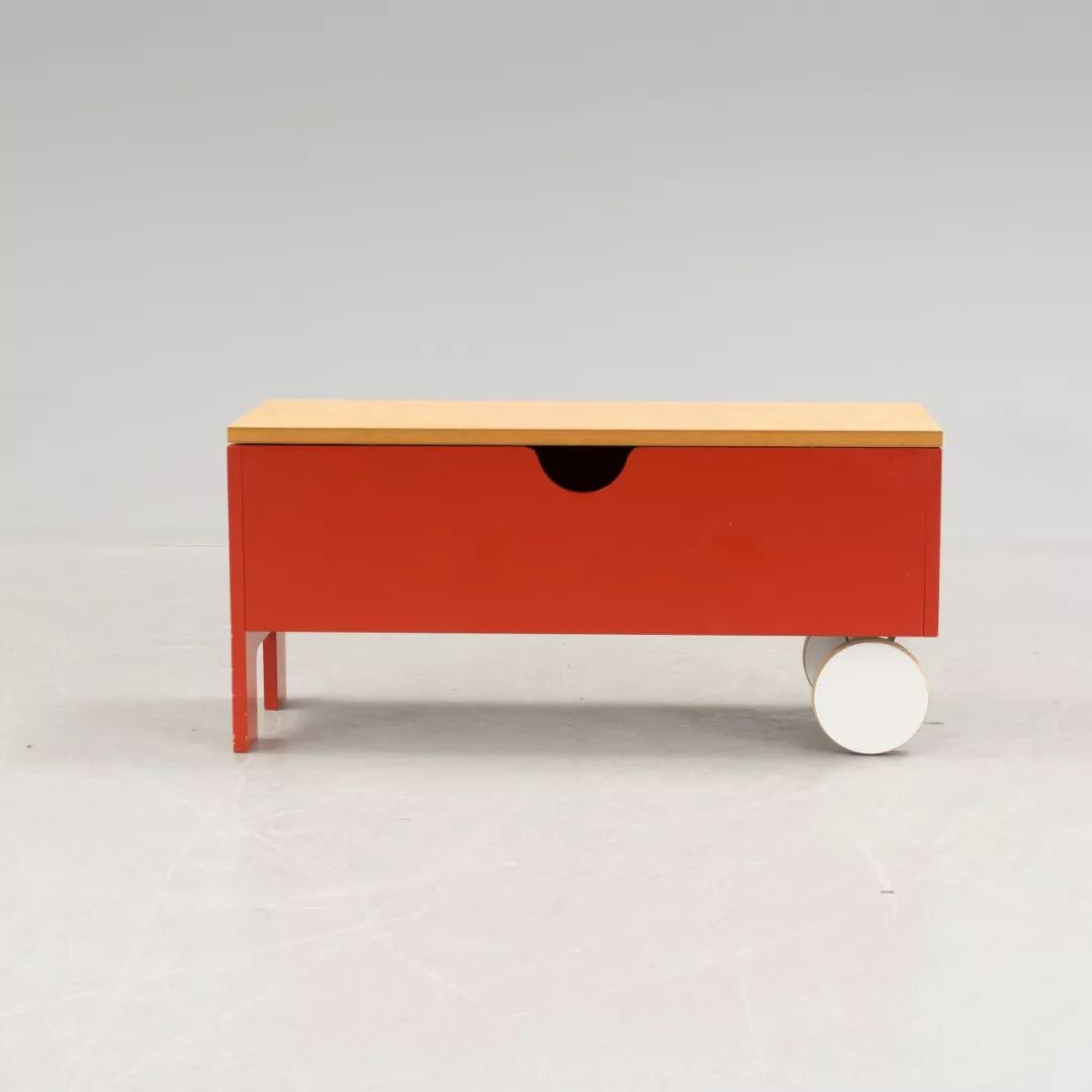 75周年庆复刻的Thomas Sandell的桌子,一端有轮子、另一端有椅脚的小长凳在90年代十分流行。
