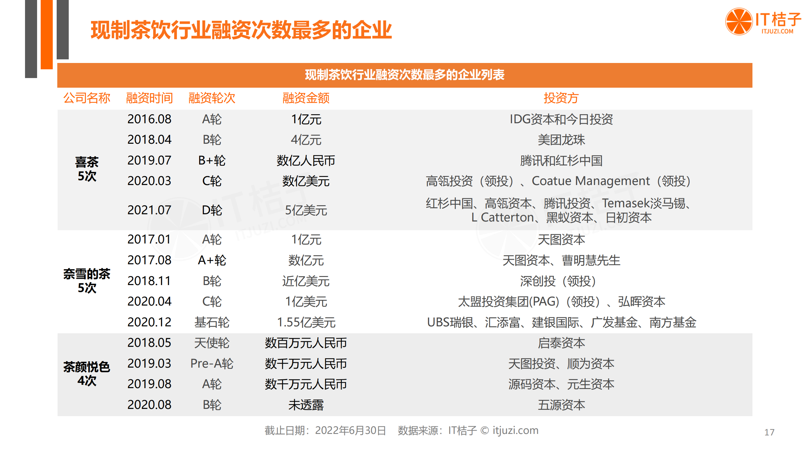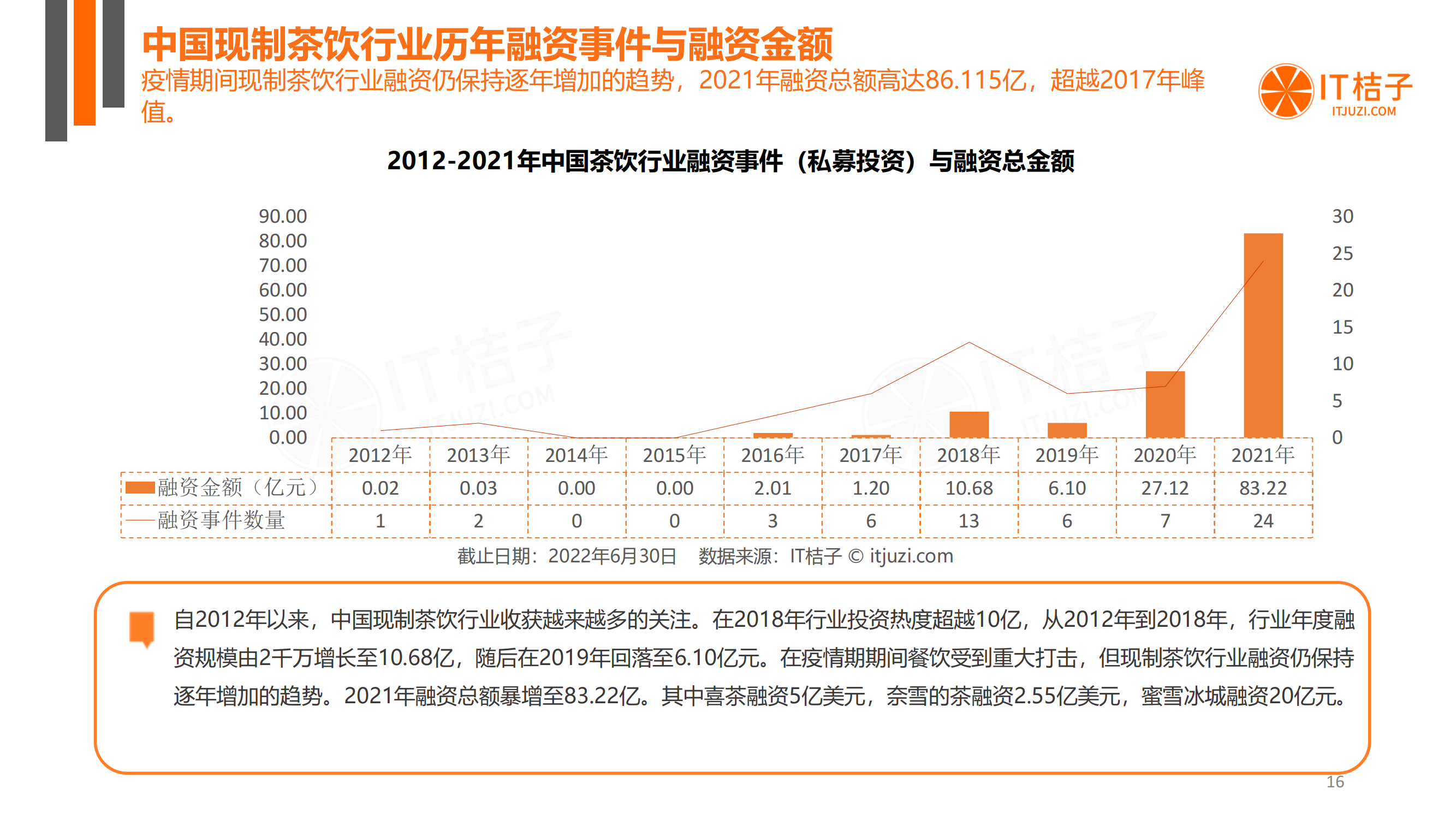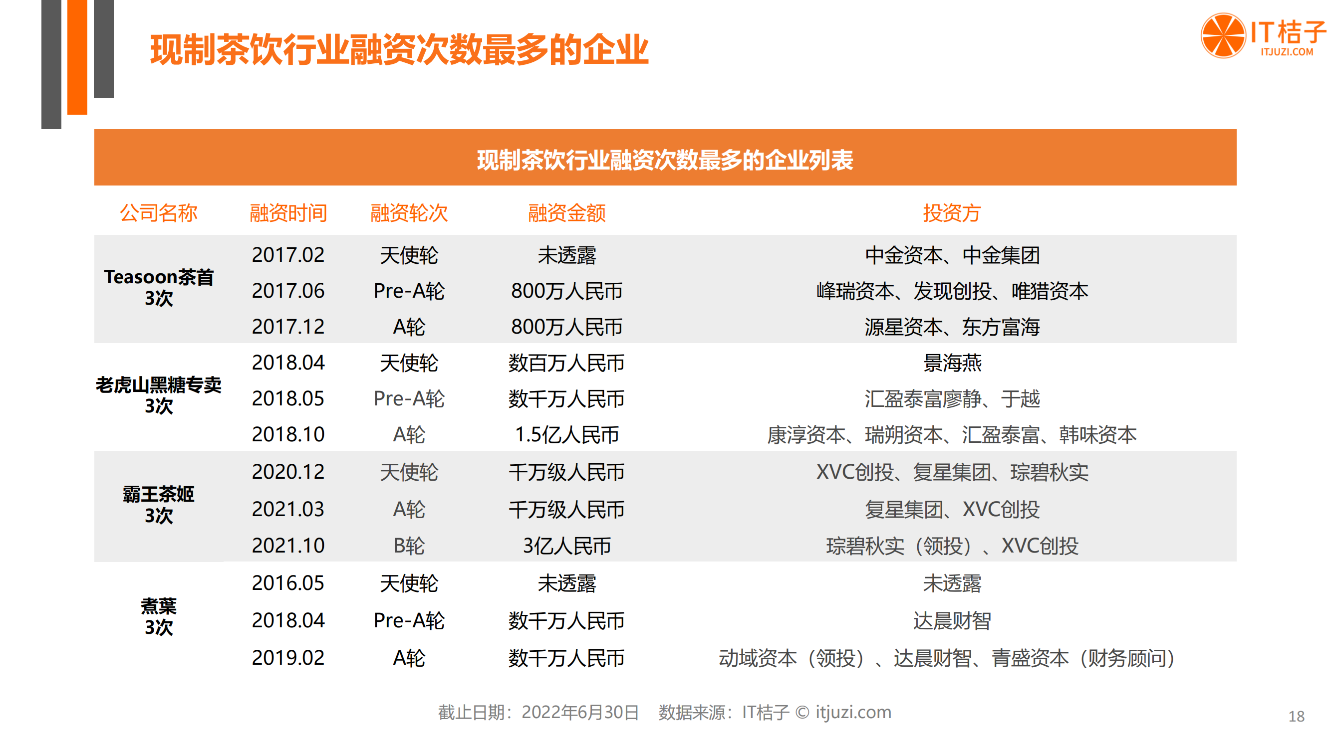 数据报告来源:IT桔子《2022年中国现制茶饮行业投融资报告》