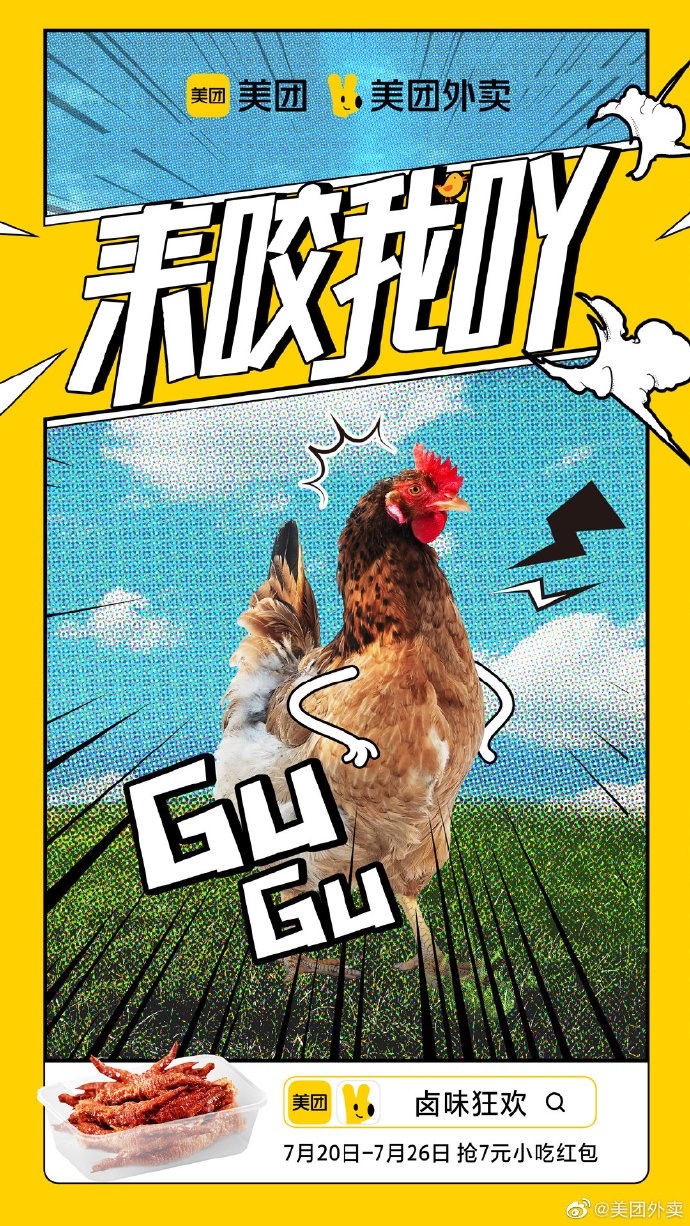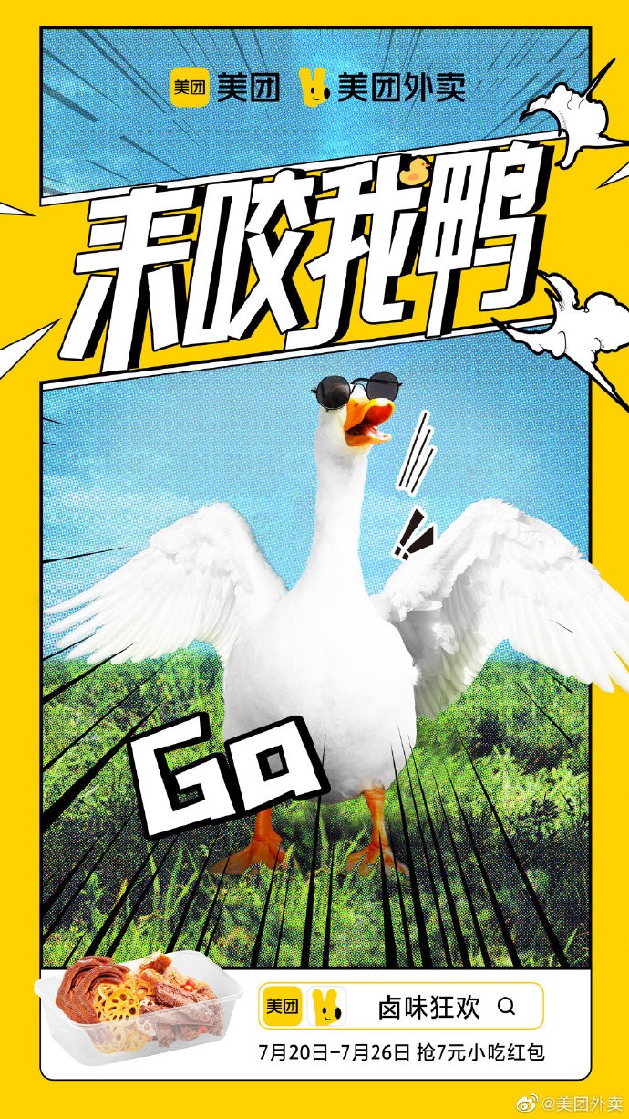 美团以“鸭”拟人化的语气调侃打工人现实生活中的苦闷,挑衅的语气激起人们大快朵颐的欲望,以轻松有趣的方式展现「生活有滋有味,就要来点卤味」的主题。