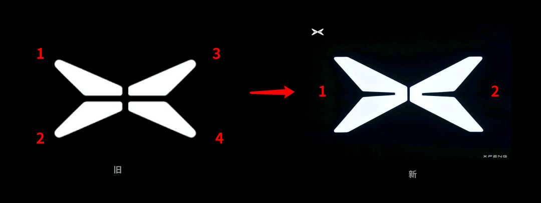 新LOGO设计,最大的差别是由原来的“X”变成了“翅膀”,也变成了两个部分组成。
