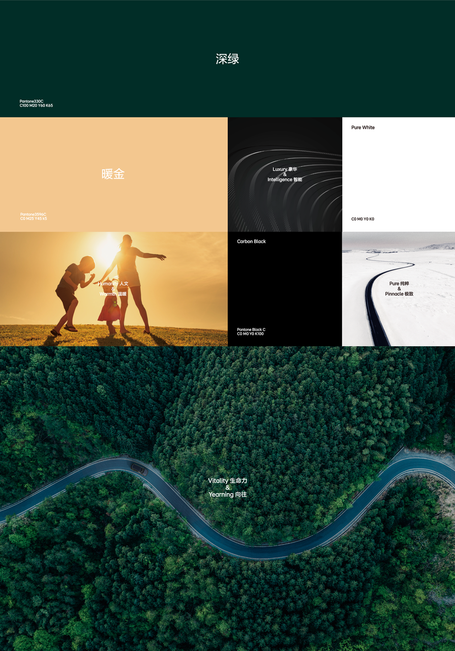 品牌色上,采用了稳重具有生命力的深绿色,搭配暖金色调,营造温暖的氛围,迎合“家”的主题。