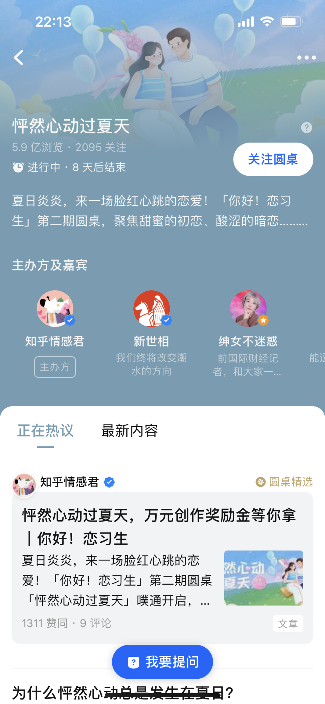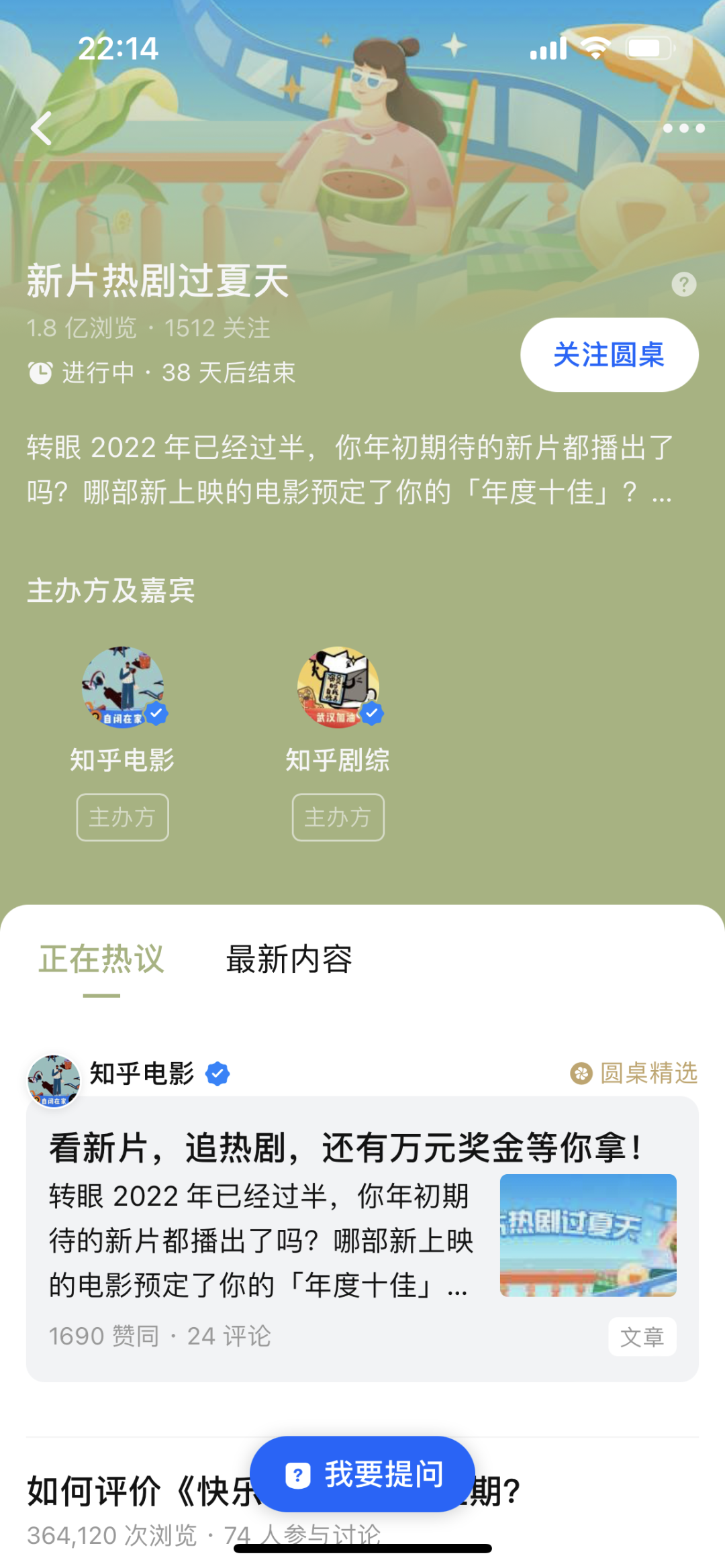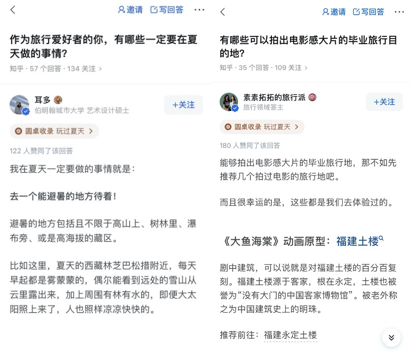 知乎针对年轻人关注的影视、旅行、时尚、情感、数码、游戏领域,推出「新片热剧过夏天」、「玩过夏天」、「看番过夏天」等七个优质内容圆桌。