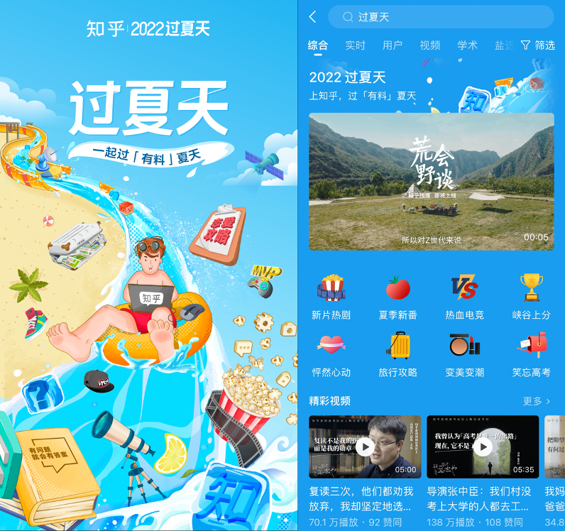 大家只要在知乎搜索「过夏天」,即可进入知乎暑期活动会场,收获青年用户成长指南、学习计划、变美干货、旅行攻略、数码购买建议、感情经验分享等多元化内容,称得上是为年轻群体量身定制了涨知识秘籍。