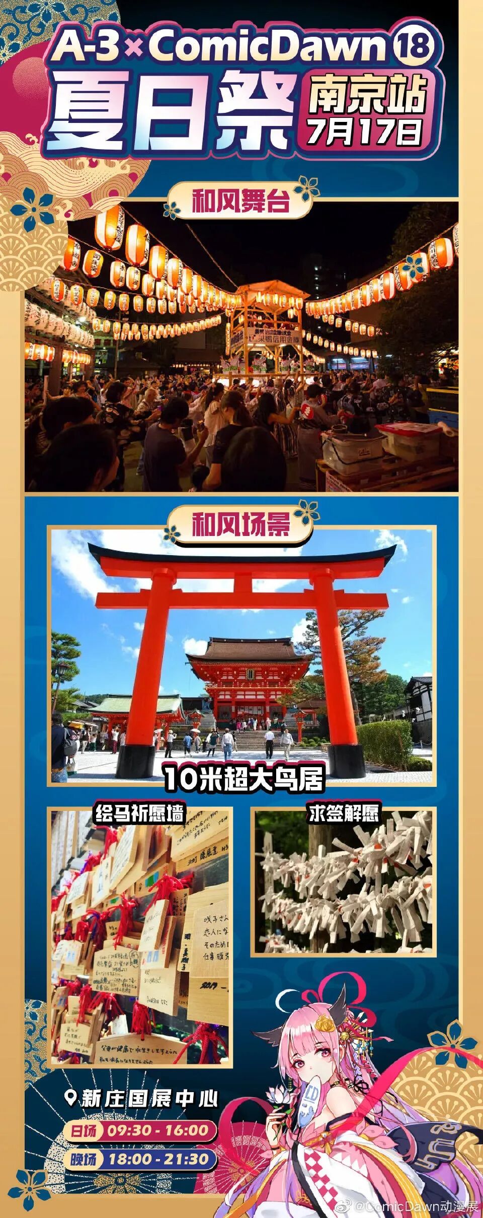 但B站这次被叫停的“南京夏日祭”,不仅借用了节日名头,更是试图还原日本祭奠元素。从B站此前发布的预告图片可以看出,现场搭建的10米高的鸟居,就是典型的和风场景。