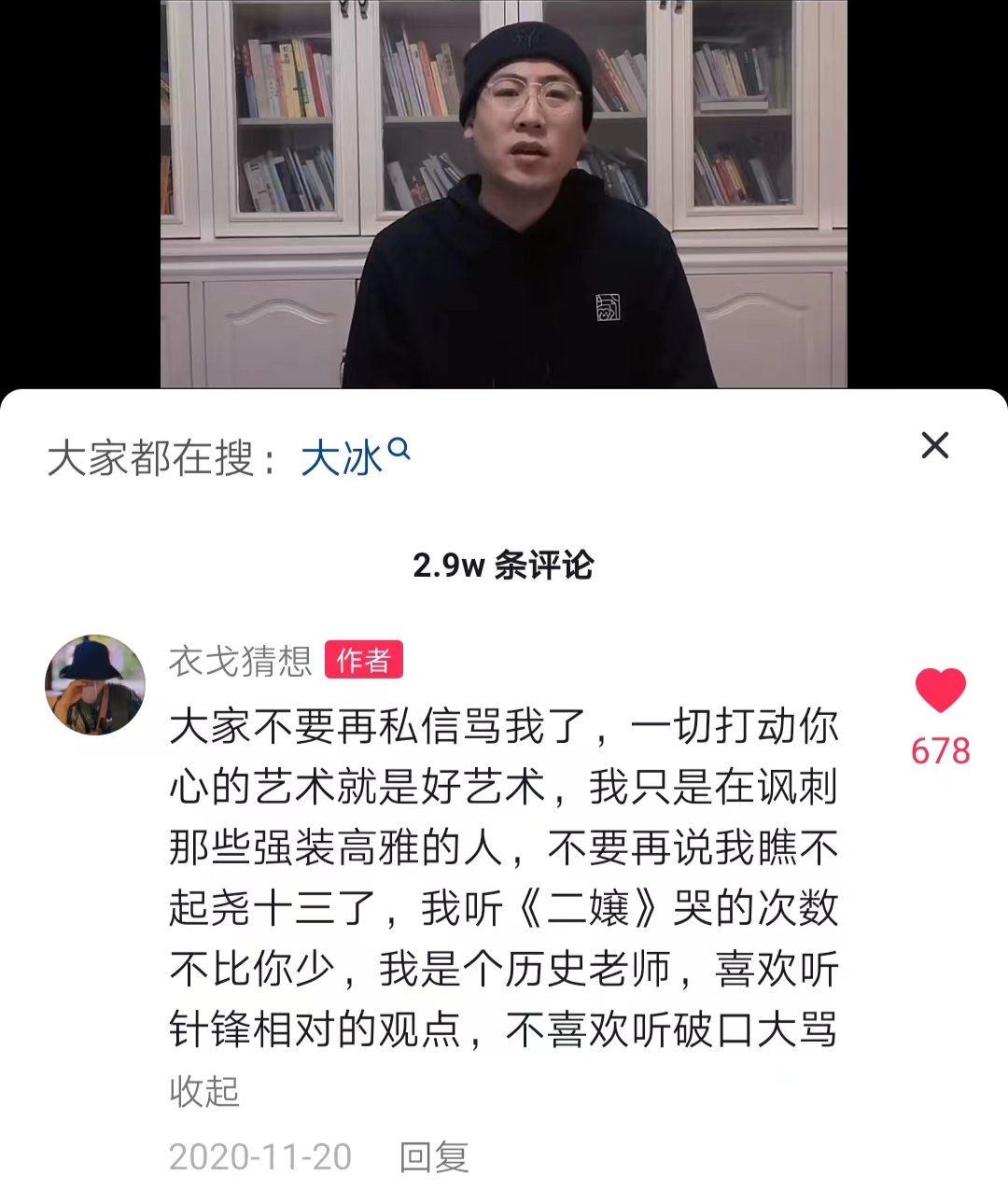 在B站,用户对《文艺青年装b指南》则有更高的包容度,@衣戈猜想 的吐槽科普风格也收获了相比抖音更高的流量。在《二舅》之前,@衣戈猜想 B站作品中播放量最高的就有上千万,最少的一支也有十几万。