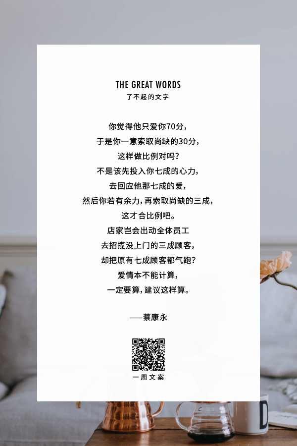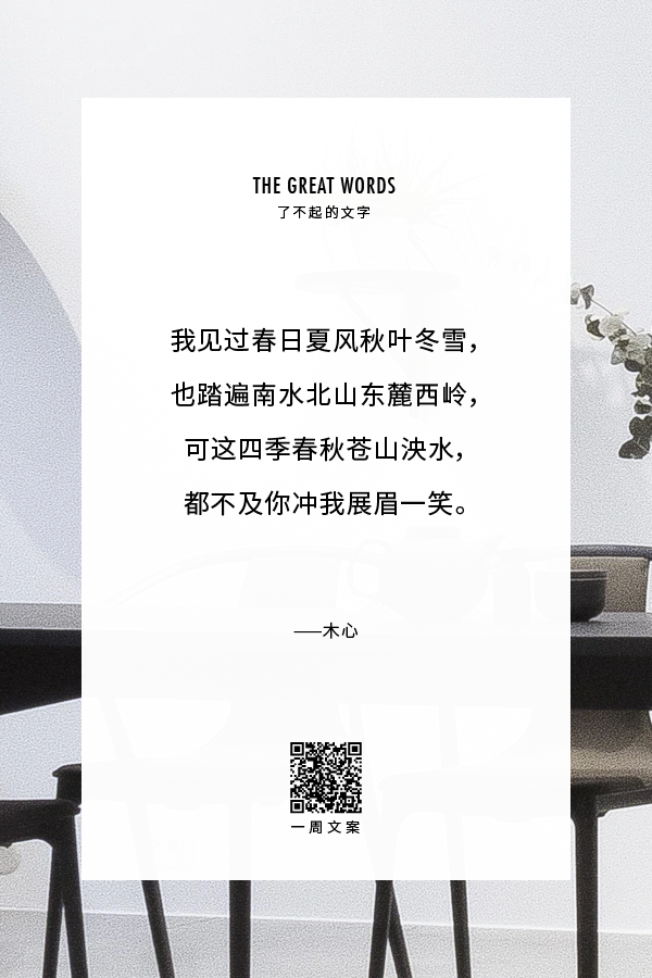 「了不起的文字」栏目是一个没有主题的主题集——来自巨著名篇、圣贤金句、传世演说、经典影剧,也来自民间谚语、市井智慧、网友评论、冷门读物……一切有深刻人性洞察的独到见地,帮助启发更多文案创作灵感。