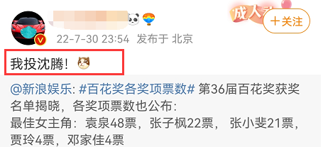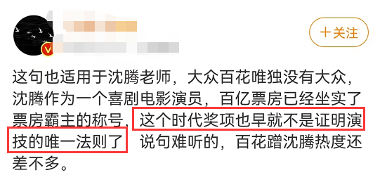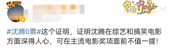好巧不巧,两个含腾量满满的话题,先后上了热搜。估计百花奖主办方看了的心情是:好疼好疼(我说的是脸 )官方一点说,是新中国电影界历史最悠久的一项评奖,创办于1962年。而这次百花奖最佳男主角有5位候选:张译38票,刘烨28票,易烊千玺15票,吴京13票,沈腾0票。不会吧,这可是沈腾啊,一个长在网友笑点上的男人;这可是观众奖,一个让观众发表电影评价和投票的奖项。虽说沈腾获得提名的电影《我和我的父辈》是部拼盘电影,沈腾戏份并不多。但沈腾拿了提名又内涵演技不行,我还是有被惊吓到。主办方提名了个寂寞,看得网友意难平,开始为沈腾打抱不平:更有意思的是,还有博主单方面宣布沈腾赢了。沈腾亲自下场的回应,很沈腾。影迷觉得不爽也很正常,不过没关系,作品实力是拿不走的。沈腾的演技,也不需要一个奖项来证明,看最近热映的《独行月球》票房蹭蹭蹭地涨就知道,这就是沈腾的号召力。所以与其隔空喊冤,行动派一夜之间冲进电影院,干脆支持一下沈腾的新电影。就像周杰伦不需要做流量,沈腾需要拿奖证明演技实力吗?这让我想起当年夕阳红老年团,连夜给周杰伦打榜,如今大家力挺沈腾的画面就是:我们欠沈叔叔一张电影票。你一票我一票,独行月球就能爆