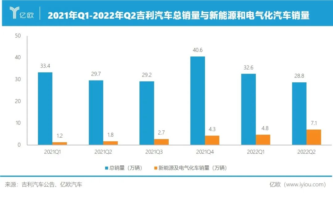 自2021年以来,吉利相继推出极氪、睿蓝等新能源品牌,2022年上半年,由吉利、极氪、几何、领克、睿蓝等五大品牌组成的新能源矩阵实现新能源汽车销量10.5万辆,同比增长376.9%,其新能源车销量增速位居全国乘用车上市车企之首。