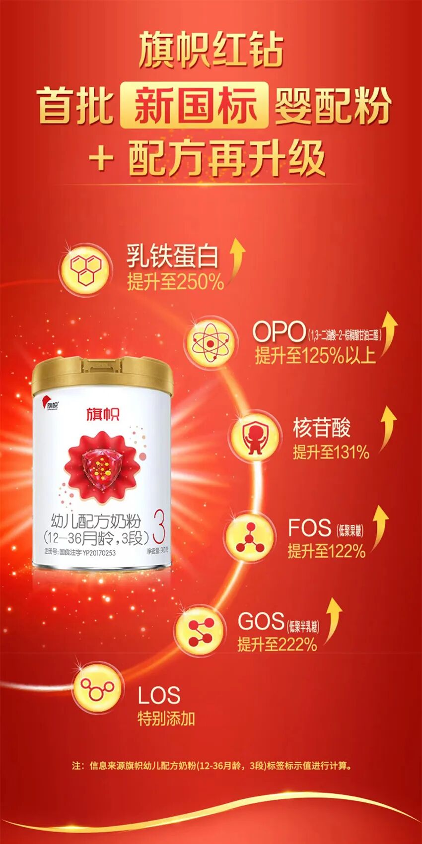 于消费者而言,新国标不再是一个悬浮的“标准”,而是通过旗帜的落实成为一款能为消费者所用的好产品。立足新国标的至高品质,旗帜不仅有效回应了新育儿时代新生代妈妈的品质需求,更为中国宝宝带来了“鲜活”全营养的成长保障。
