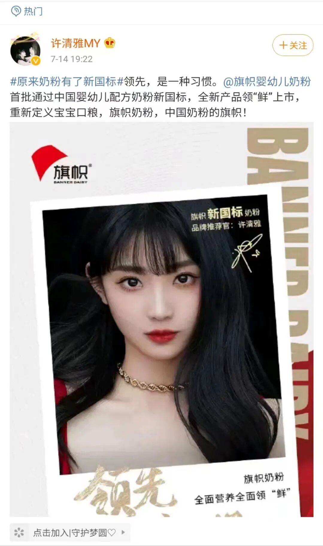 值得一提的是,旗帜新国标奶粉在社交媒体上也引发不少普通消费者自发种草,再加上众多明星、大V及媒体的打call,让旗帜新国标奶粉的上市还带动了一波#原来奶粉有了新国标#的热搜话题,引爆亿级热度,从而在更广泛大众圈层激发了关注与讨论。