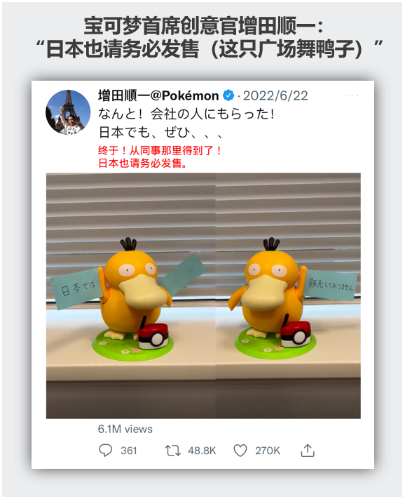 再加上他那“平庸”的气质(时常头痛使其经常忘记事情,神情常处于呆滞状态)和洗脑上头的BGM,让这款广场舞者造型的可达鸭玩具的人气比他2020造型人气增长近20倍。