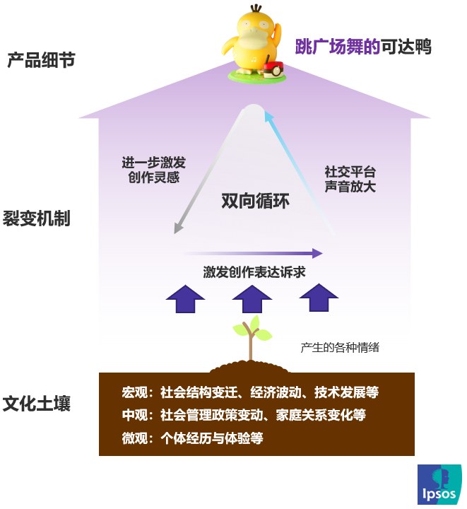 益普索Ipsos通过对这次爆红营销事件的主角“可达鸭”进行社媒声量监测、消费人群调研等研究,总结出IP跨界营销重要三要素: