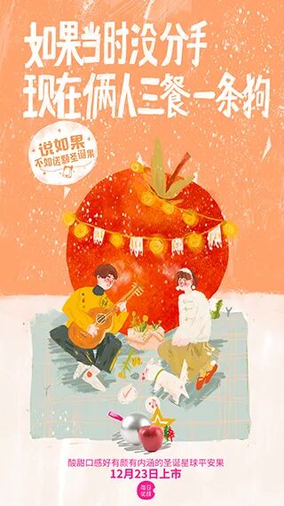 在2017年的圣诞节,每日优鲜推出的海报《如果当时》倒是没有走浪漫路线,反而刮起了一阵土味emo风。