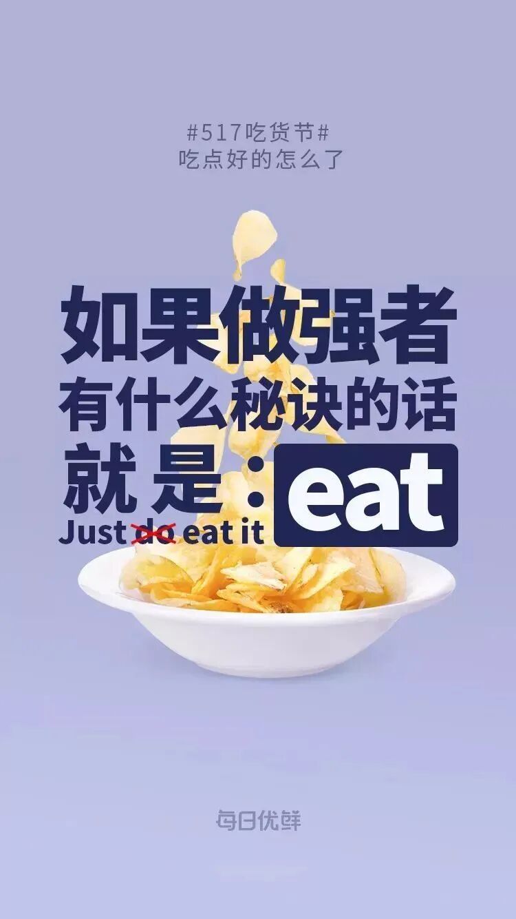 又比如,每日优鲜为517吃货节发布的这组“劝食”海报。