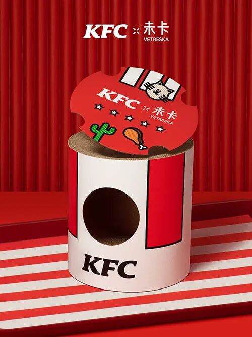 最近,肯德基联合宠物品牌未卡推出巨型猫抓桶,这个桶长得就很像肯德基全家桶,桶盖的设计加入了未卡经典的仙人掌元素。整个猫抓桶由环保材料瓦楞纸制造,上面有敞篷窝,下面有钻钻洞,适用多种体型的猫猫,据悉活动期间上海地区限量发行 1800 个。