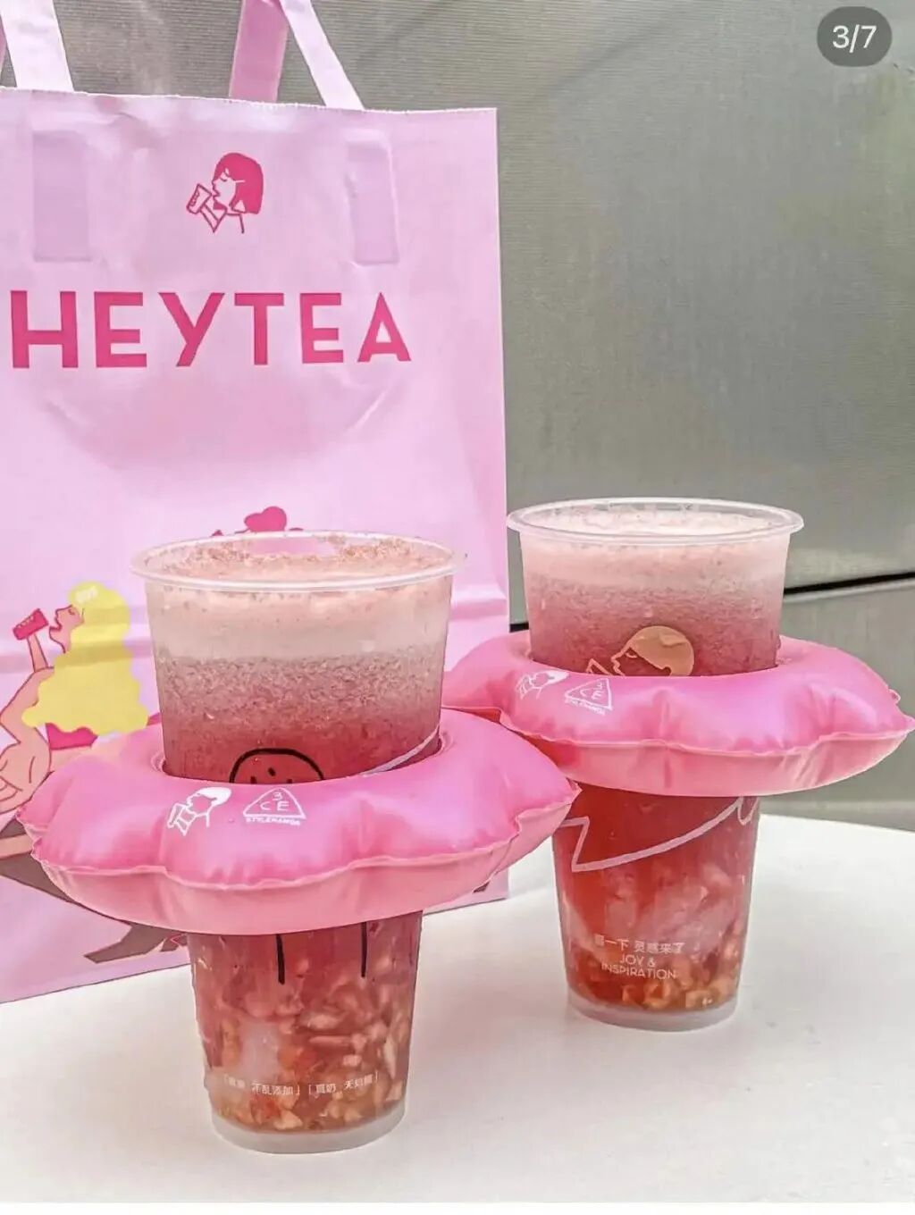 喜茶作为跨界周边最高产的选手之一,不仅做到了“保质保量”,每每上线还能在社交平台掀起一股跟风晒单的潮流。最近喜茶和3CE联名推出的车厘子饮品虽然反响平平,但周边却实实在在的火了一把。先是泳圈杯套,首先从造型和颜值上就秒杀了一众纸质杯套,试问哪位少女能抵挡的了这般可爱暴击。