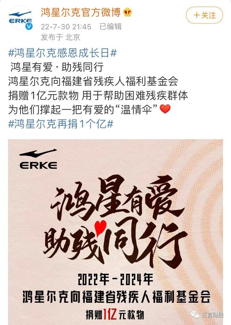 “鸿星尔克再捐1个亿”再上热搜,这次却没有引发野性消费