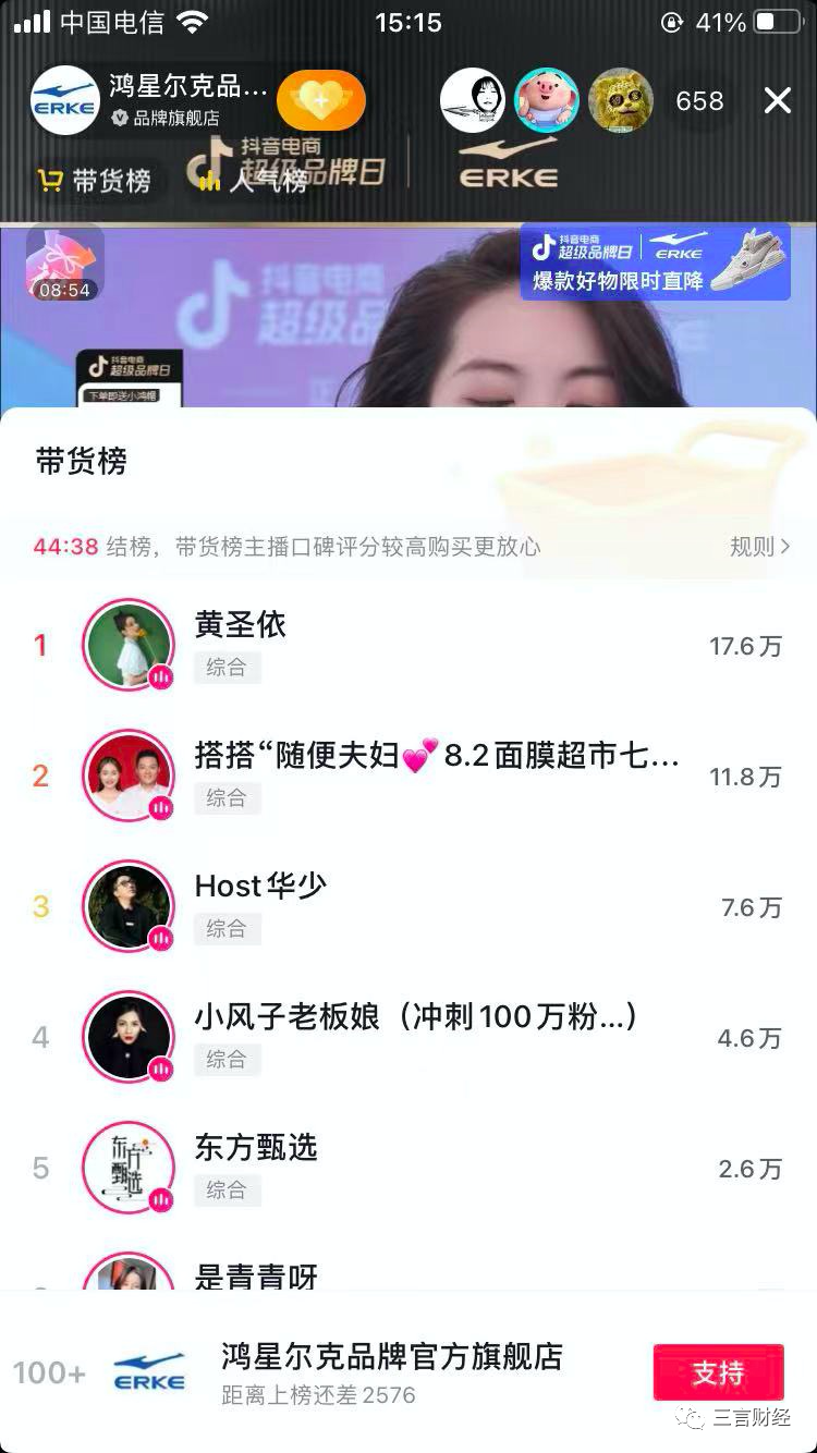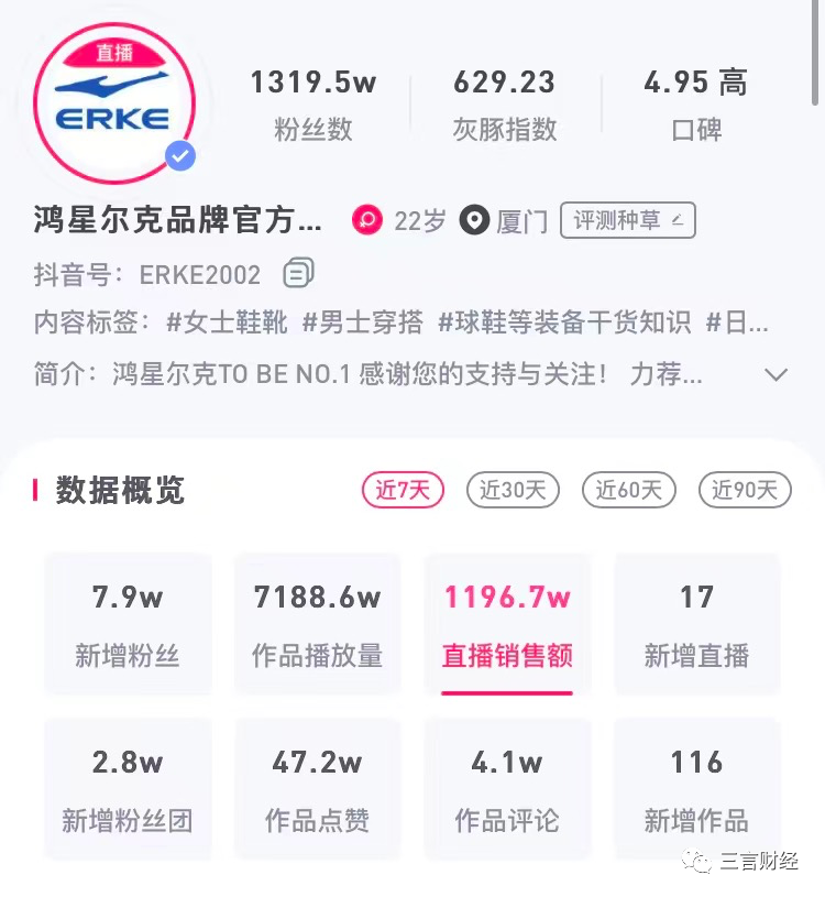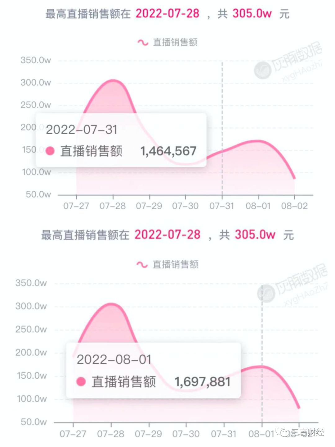 从直播销售额来看,鸿星尔克品牌官方旗舰店的抖音账号,近7天内销售额最高的是7月28日,为305万元。而有大量网友涌入的7.31-8.1,则分别只有146万和不到170万的销售额。而近7天内,鸿星尔克品牌官方旗舰店的抖音账号的直播销售总额为1196.7万元。也就是说,红星尔克7.31和8.31两天的直播销售额在近7天内约占1/4,并没有什么特别的表现。今天下午3:15,鸿星尔克品牌官方旗舰店的抖音直播间在线观看人数只有658人,在带货榜的排名也在100名以后。时隔8个小时,到今晚8:14分,鸿星尔克品牌官方旗舰店的抖音直播间在线观看人数增长到827,带货成绩依旧排在100名以后。可见这次捐款的确给鸿星尔克带来一波流量,但却没能带来野性消费。