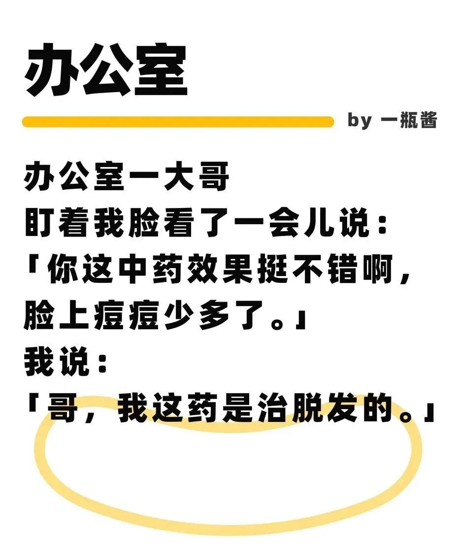 生活不如意者,十有八九,聪明的人会把平淡转化成幸福,而不那么聪明的人会把平淡转化痛苦”。能够把生活过成段子的人,无疑是那些聪明的人。笑果工厂也致力于挖掘生活中那些搞笑段子,通过征集网友投稿,挑选一些段子以段子日历的形式进行分享。最近我又发现了一些有趣的段子,分享出来给大家乐一乐。传下去,治疗青春痘最好的方法是脱发,治脱发的药副作用是祛痘。口罩果然遮丑,理发师没有错,是你长错了