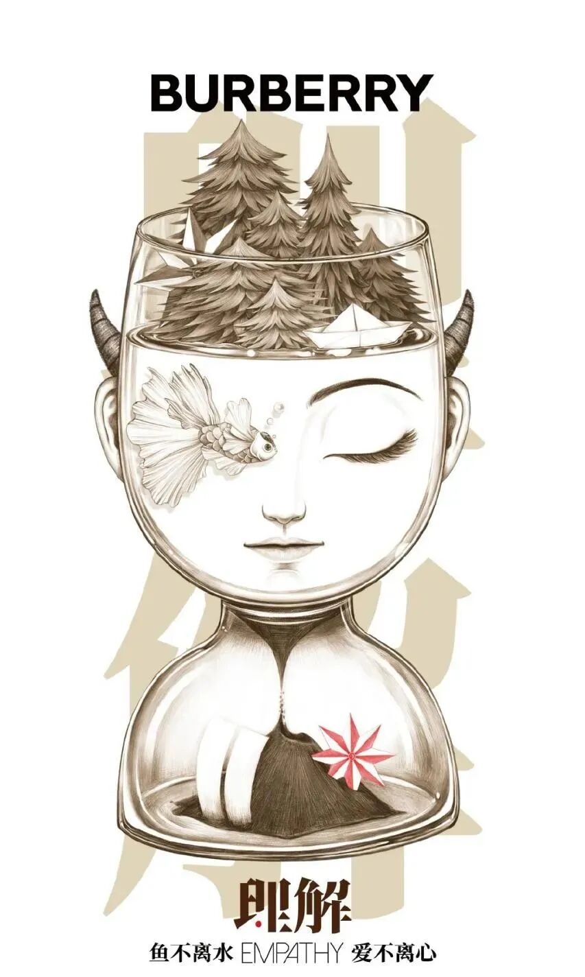 相比于巴黎世家,Burberry多少是有点艺术家气质在身上的,邀请了「W 野狗艺术舱 · 坨比」以品牌新季设计为灵感,创作了《跨越爱的八芒星》创意动画,并诠释了其中含义。