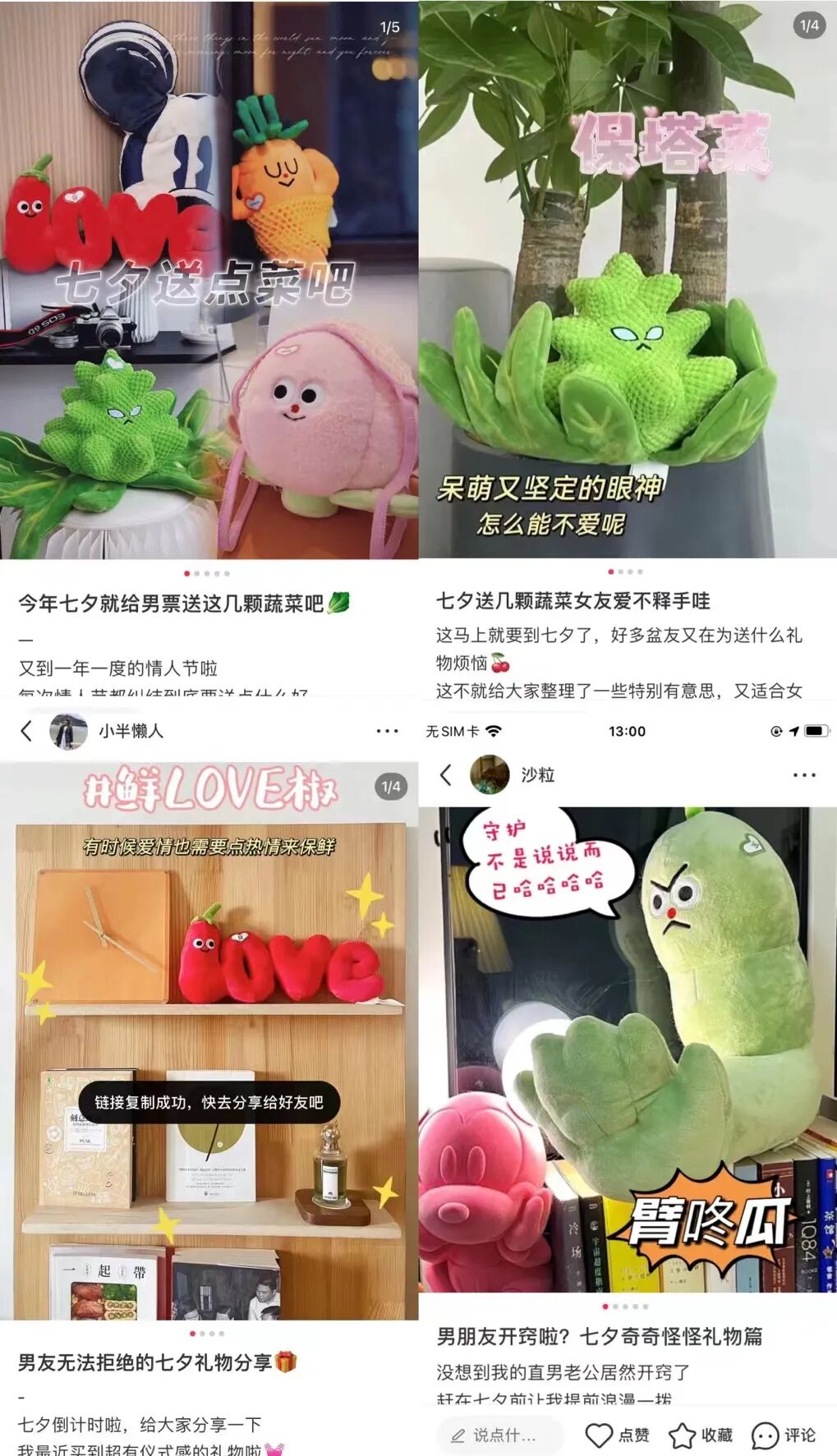 为此阿里妈妈,还打造了一个「情蔬培育基地」。这或许是表达爱情最好的比喻,从落地生根,到发芽生长,再到最后结果落地,期间每一个环节,都少不了彼此的用心。真正的爱情,是具有向下扎根,向上生长的力量的,好的爱情,就应该是生机勃勃的,就像查普曼所说的:“爱是自然界的第二个太阳。”我觉得这场传播超有爱的地方就是这个部分,以往多数品牌只做到平面稿部分基本就完稿了,可阿里妈妈却将「七夕情蔬」奔现,在小红书上做种草,直接将甜蜜的爱情气氛从线上拉满到线下,这里也想要给创意 Agency TIMA点个赞,让整个Campaign丰富了起来。