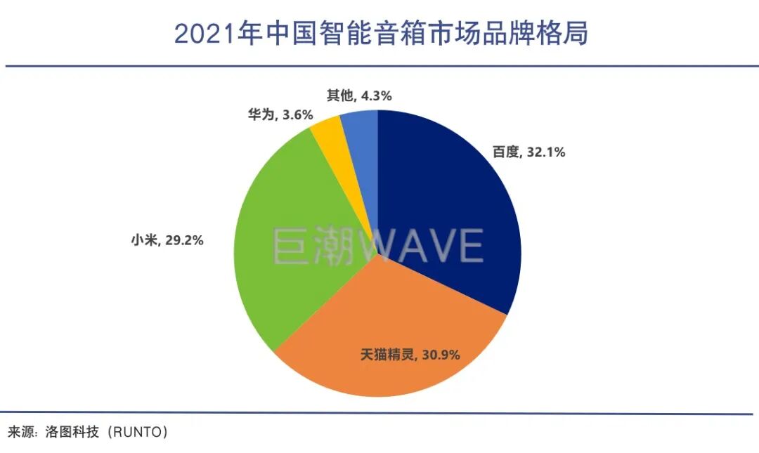 创业公司自然难以承受这种高强度竞争,智能音箱赛道因此越来越成为巨头的游戏。IDC报告显示,2020年国内智能音箱赛道呈现三足鼎立的格局,阿里巴巴、百度和小米的销量共占市场份额的95.56%。
