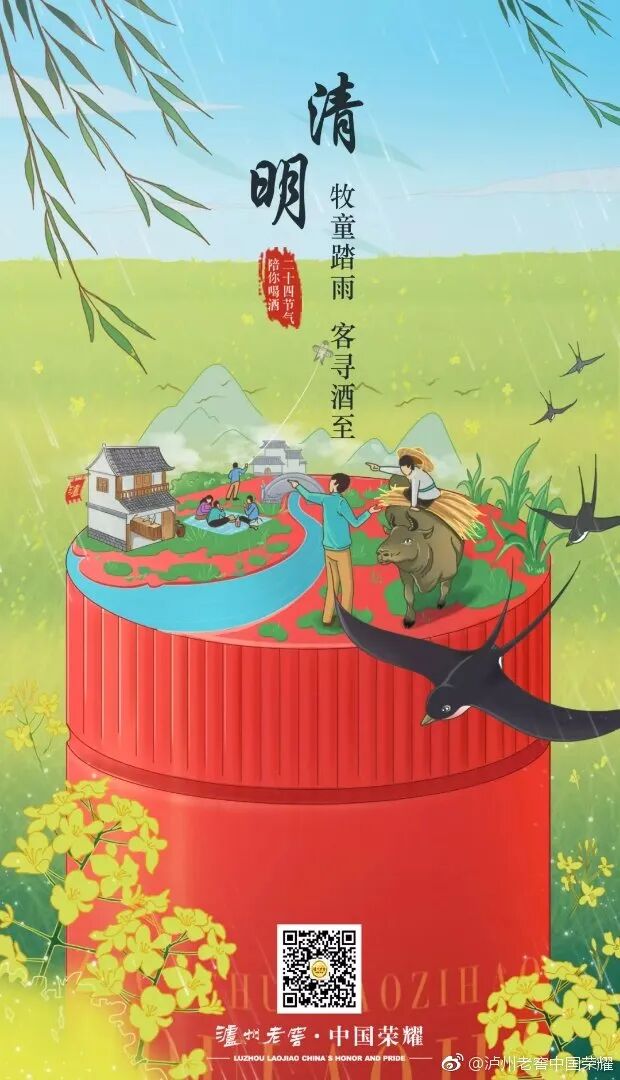 今日清明,牧童踏雨,客寻酒至。人间四月,正是踏青的好时候,喝喝小酒,吹吹微风,唠唠家常,生活也可以如此惬意。