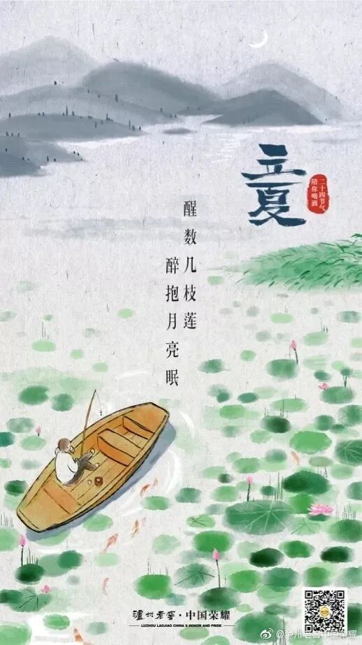 今日#立夏# 。月上山头,独乘小舟,在池中垂钓,舟中有最爱的美酒。莲开满池,夜色渐深,却不想归家。罢了,醒数几枝莲, 醉抱月亮眠。
