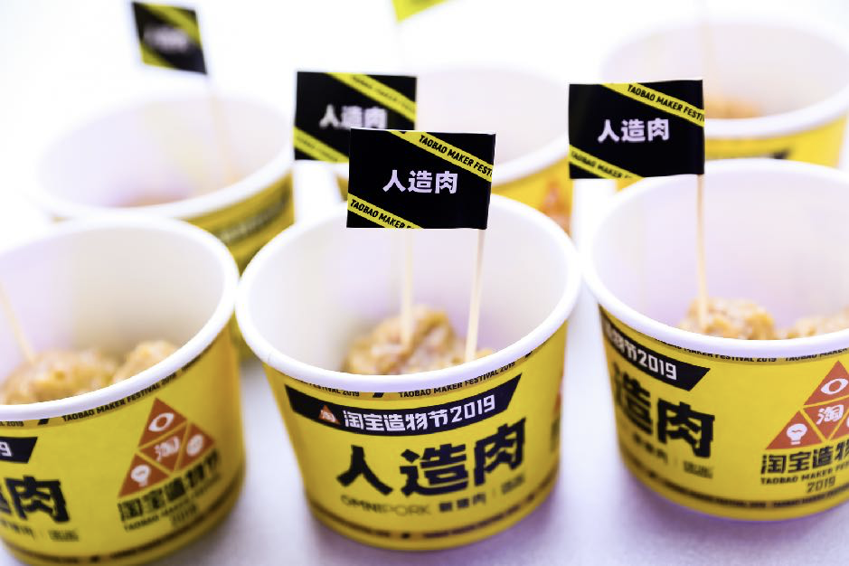 历届造物节现场,都展出了各个领域的神奇物种,图为2019年造物节发布的「人造肉」,以及利用曾搭载发射过天宫二号和神舟11号飞船的长征二号F火箭遗留残骸,回收修复、特殊处理后搭建而成的「火箭餐厅」。