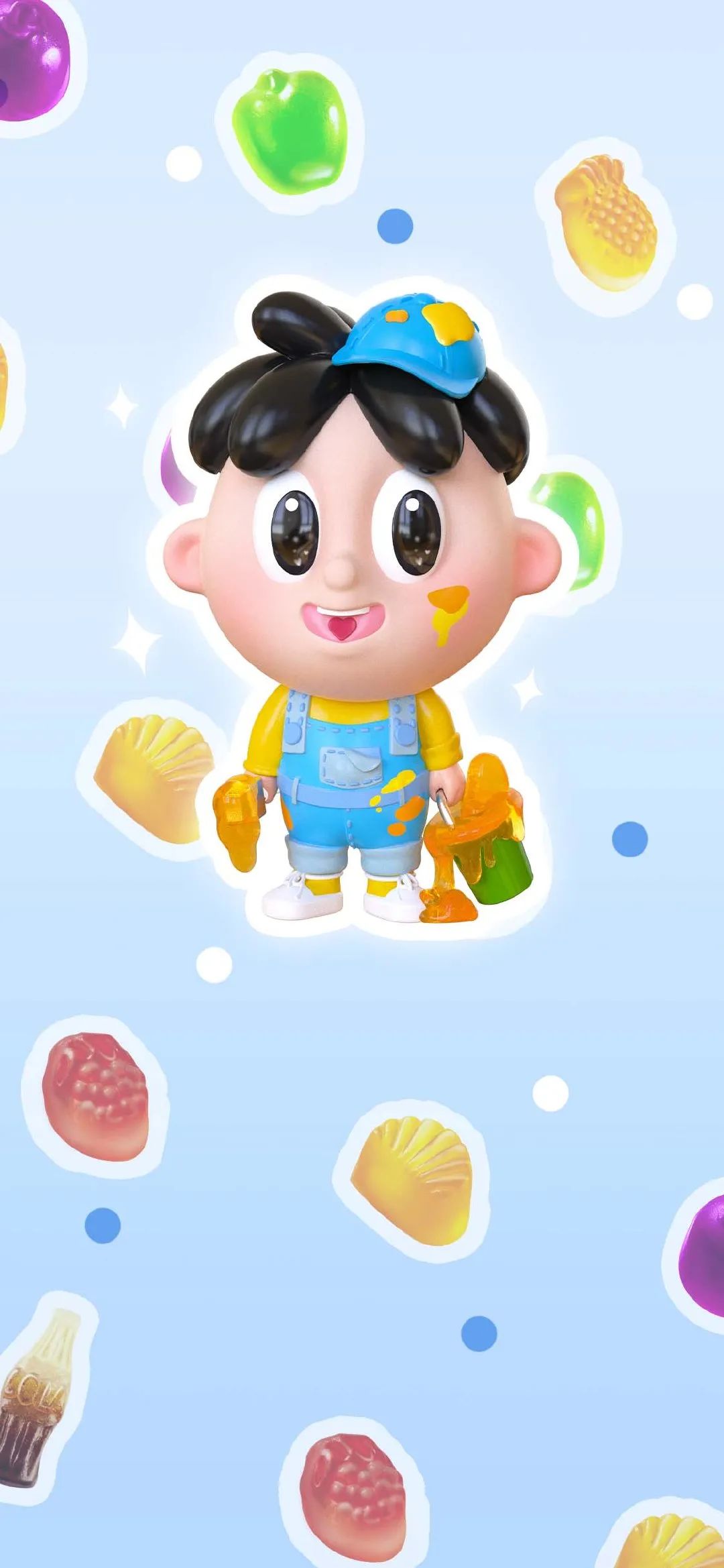 穿着俏皮背带裤的旺仔,头戴鸭舌帽