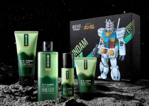 此次一直布局男性护肤市场的品牌相宜本草就围绕男性护肤这个新兴蓝海市场展开狙击,通过深入年轻男性的圈层文化,借助大量男性都喜欢的高达等二次元文化联动,用年轻化沟通方式,成功打出一套针针对”他经纪“的组合拳,获得了他们的认可。