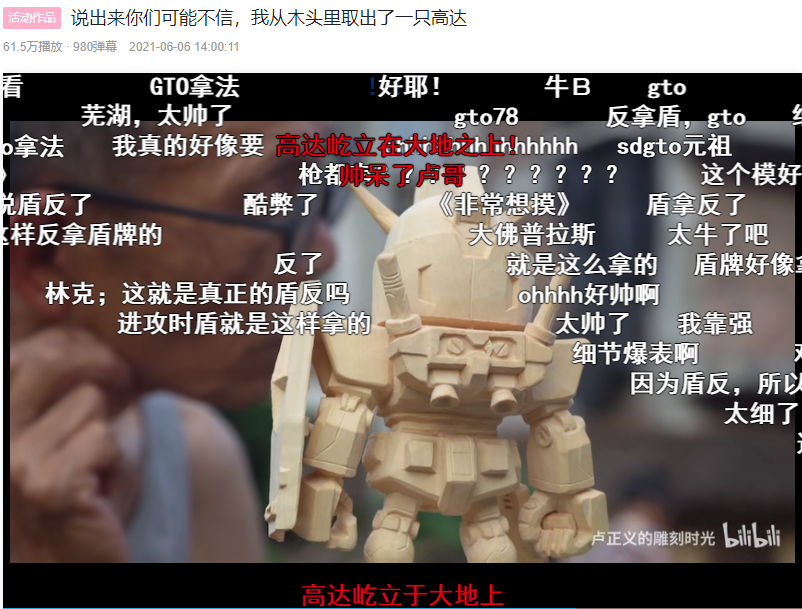 相宜本草联合B站头部UP主知名木雕达人“卢正义的雕刻时光”,通过木刻还原相宜本草男士的定制高达手办,吸引了大批观众前来观赏和弹幕互动。而在视频中植入活动同款礼盒,增加产品的曝光,也将观众的注意力吸引到品牌和产品上,实现流量的有效转化。