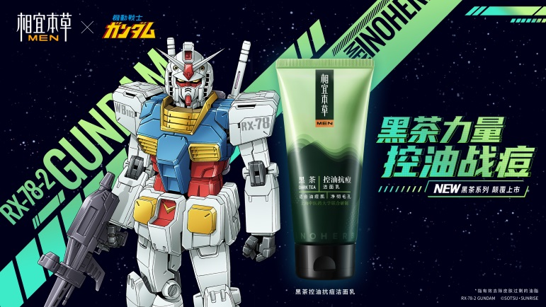 高达自身不仅融合了日本几家动漫中初心、热枕、责任感等文化标签,更是在二次元文化圈层占据了一定地位。相宜本草让高达契合“控油战痘”的产品属性,也让高达这一IP为品牌自身属性添砖加瓦。