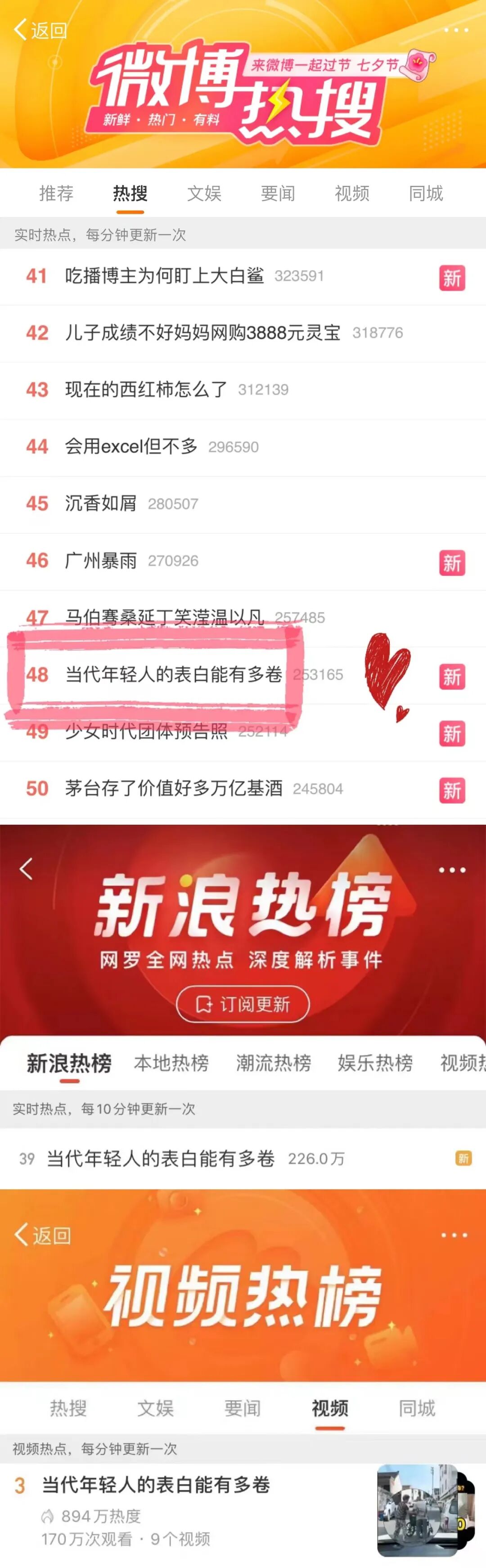 据了解,活动期间抖音相关话题#就是黑凤梨#更获得了超过7500万+的高播放量,总曝光量直破1.2亿,一举冲上抖音热点话题榜;另外微博话题#当代年轻人的表白能有多卷#更冲进热搜榜前50,视频热搜榜TOP3,共计话题曝光量突破1.1亿+。